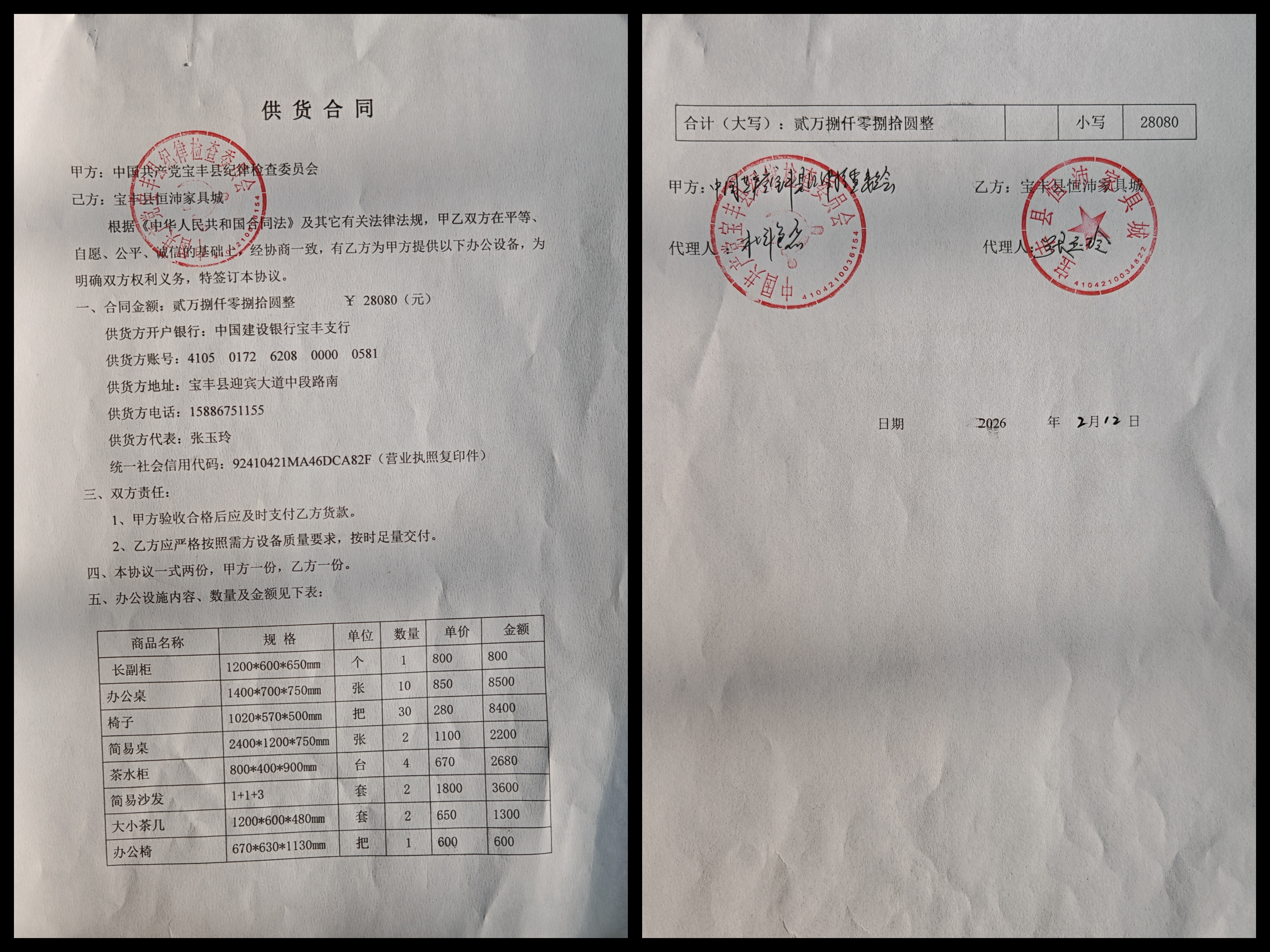 | 二、合同名称:中国共产党宝丰县纪律检查委员会采购办公家具 | ||||||||||||||||||||||||||||||||||||||||||||||||||||||