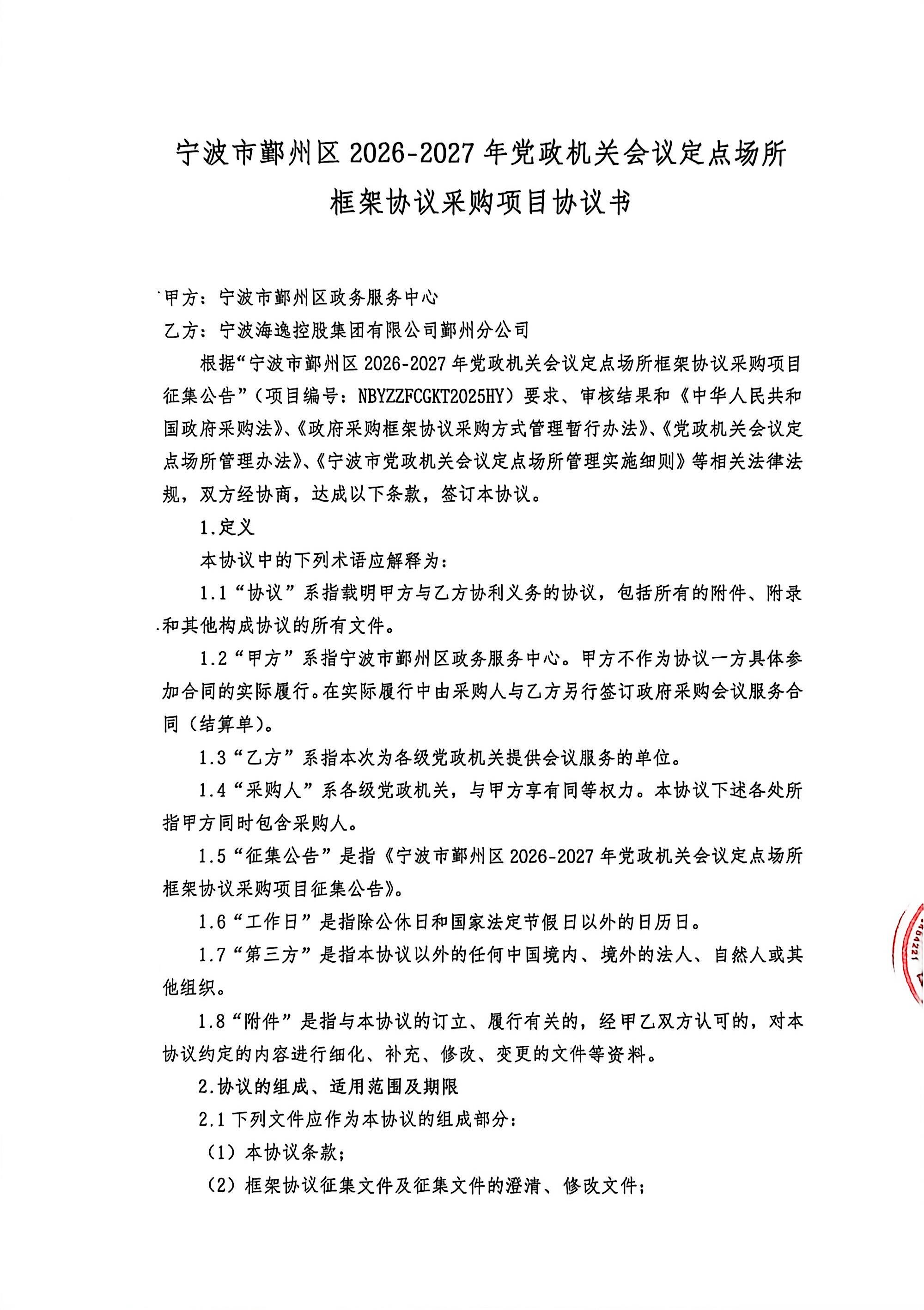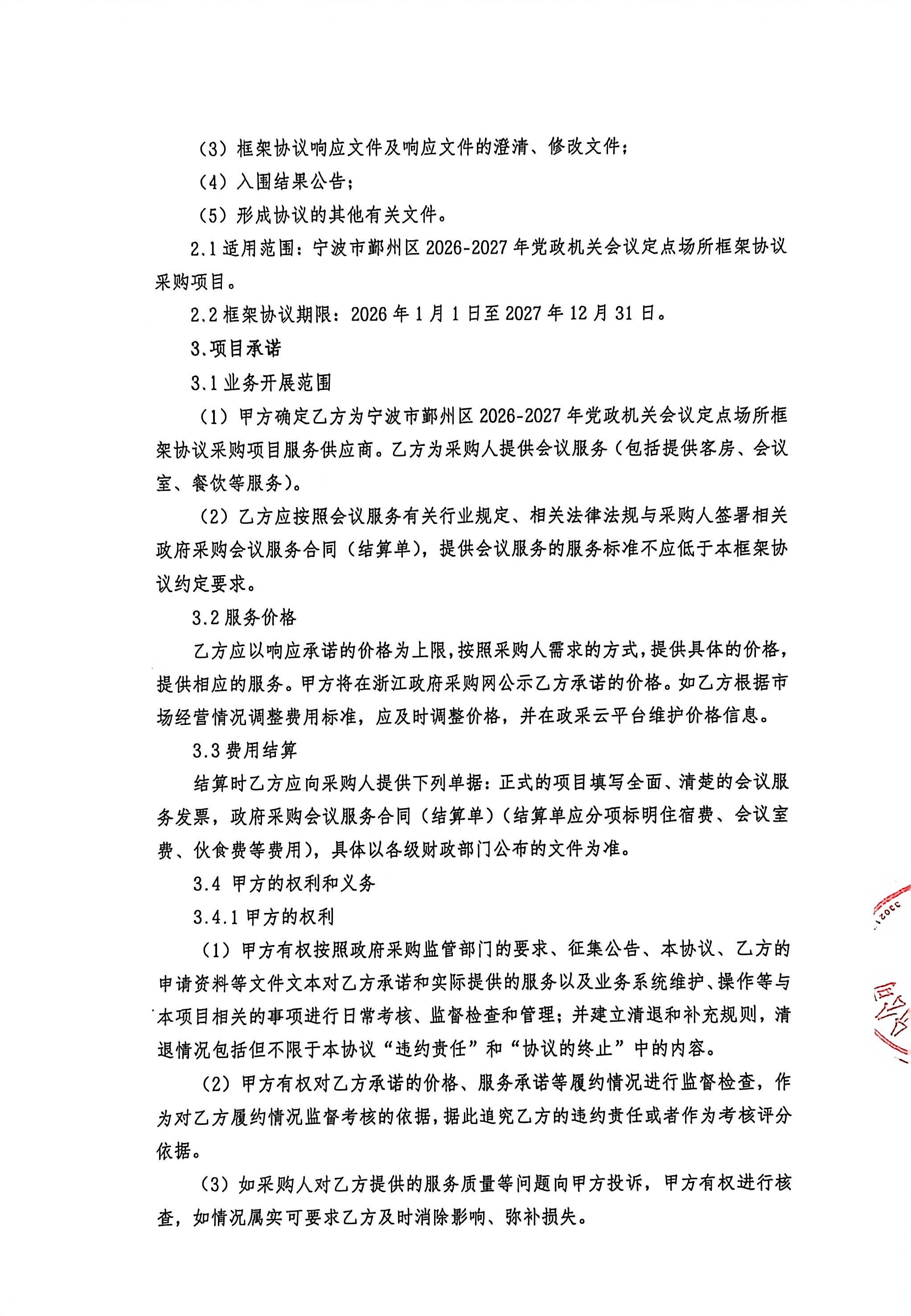 项目名称:宁波市鄞州区*********年党政机关会议定点场所框架协议采购项目