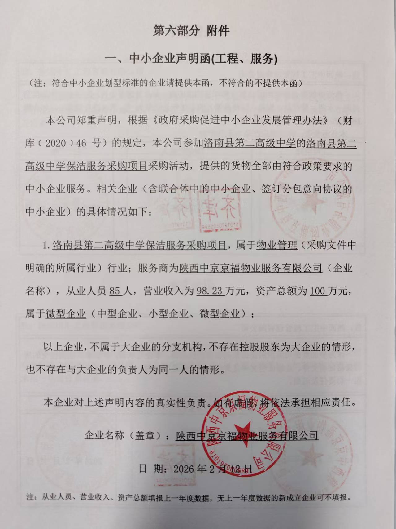 洛南县第二高级中学保洁服务采购项目中标(成交)结果公告