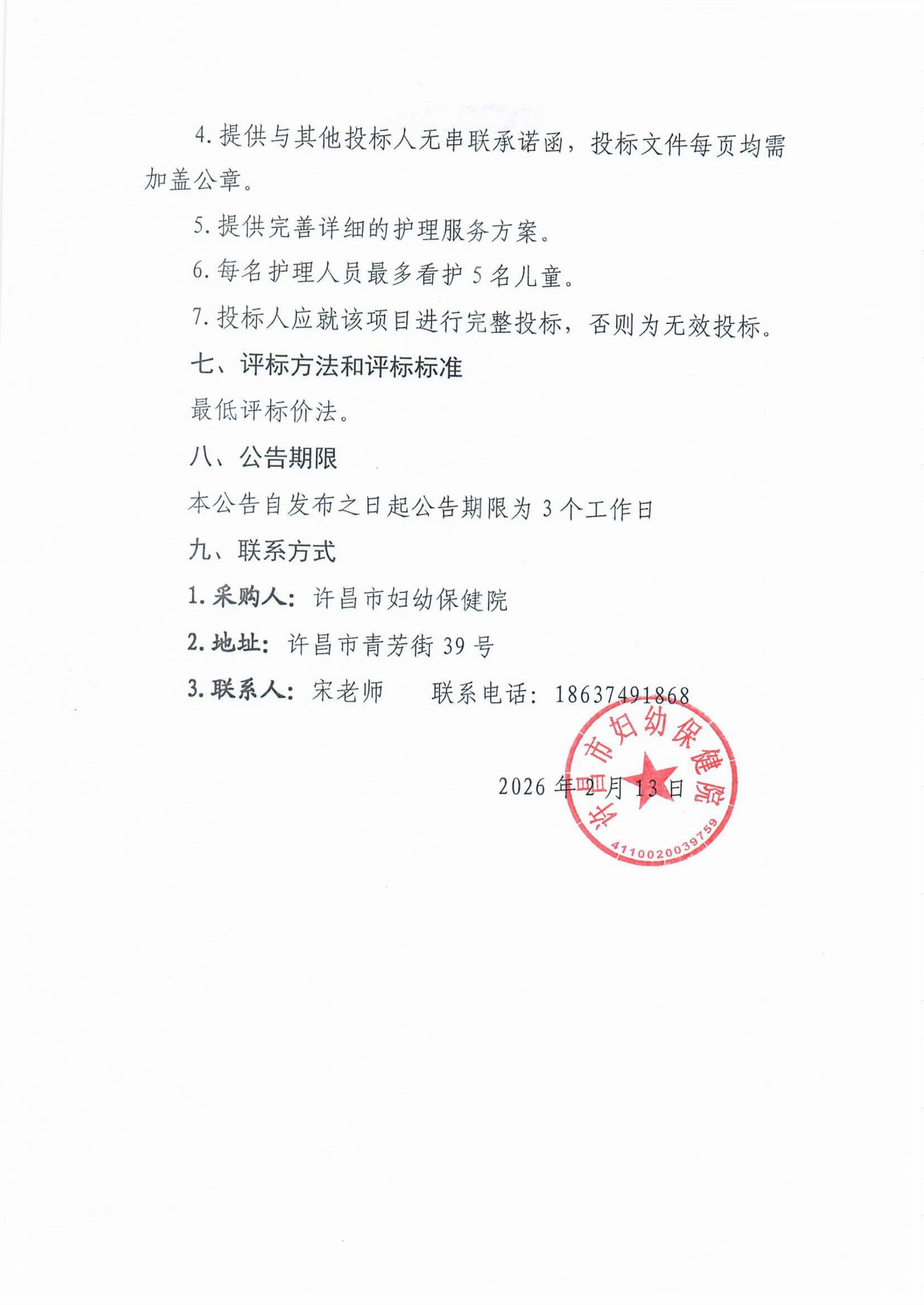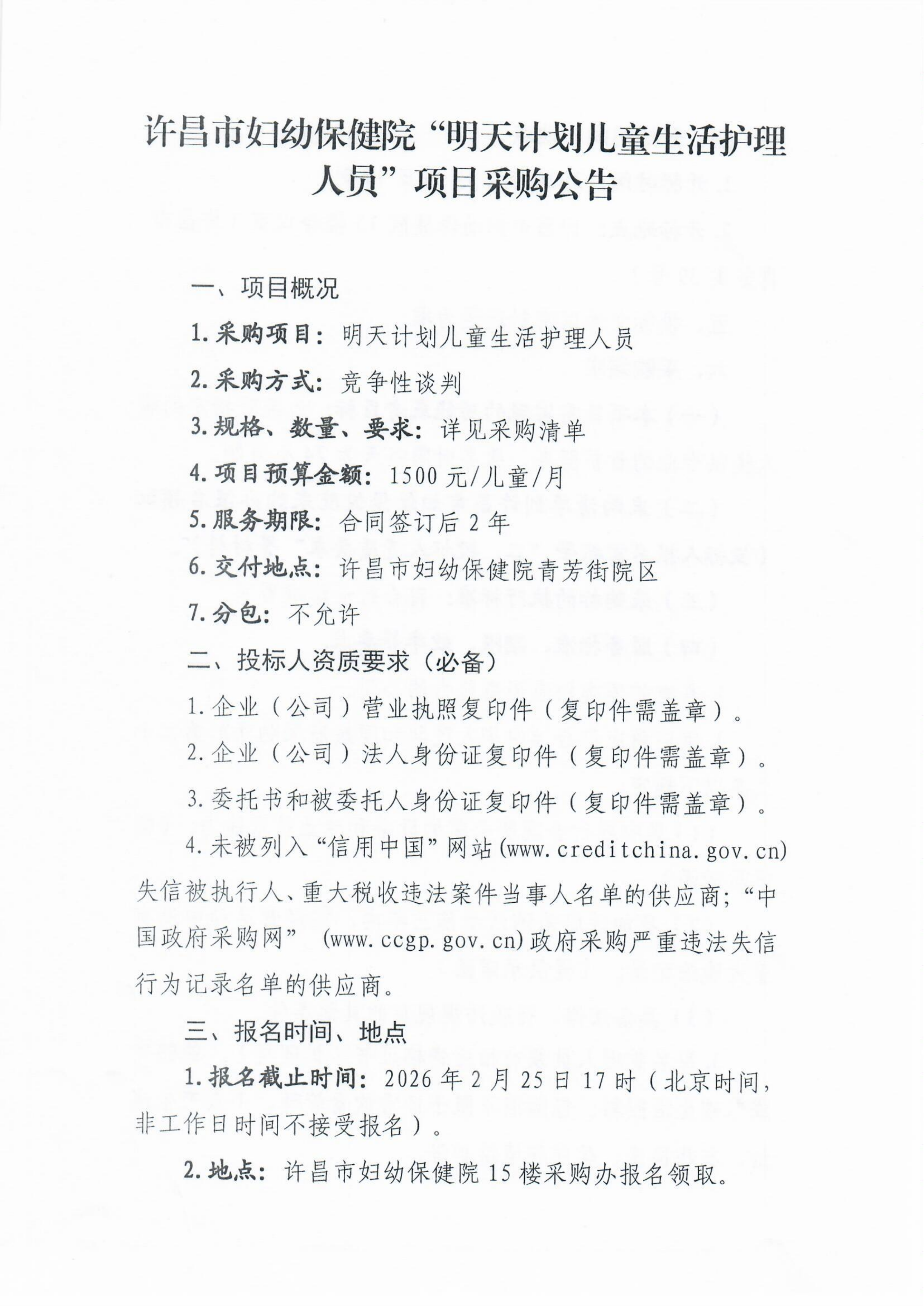 许昌市妇幼保健院“明天计划儿童生活护理人员”项目采购公告