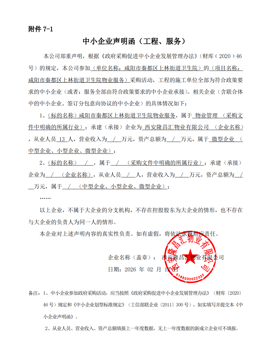 因政采系统设置问题,本项目项目名称为:咸阳市秦都区上林街道卫生院物业服务。