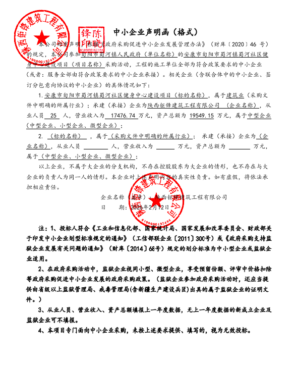 安康市旬阳市蜀河镇蜀河社区健身中心建设项目中标(成交)结果公告