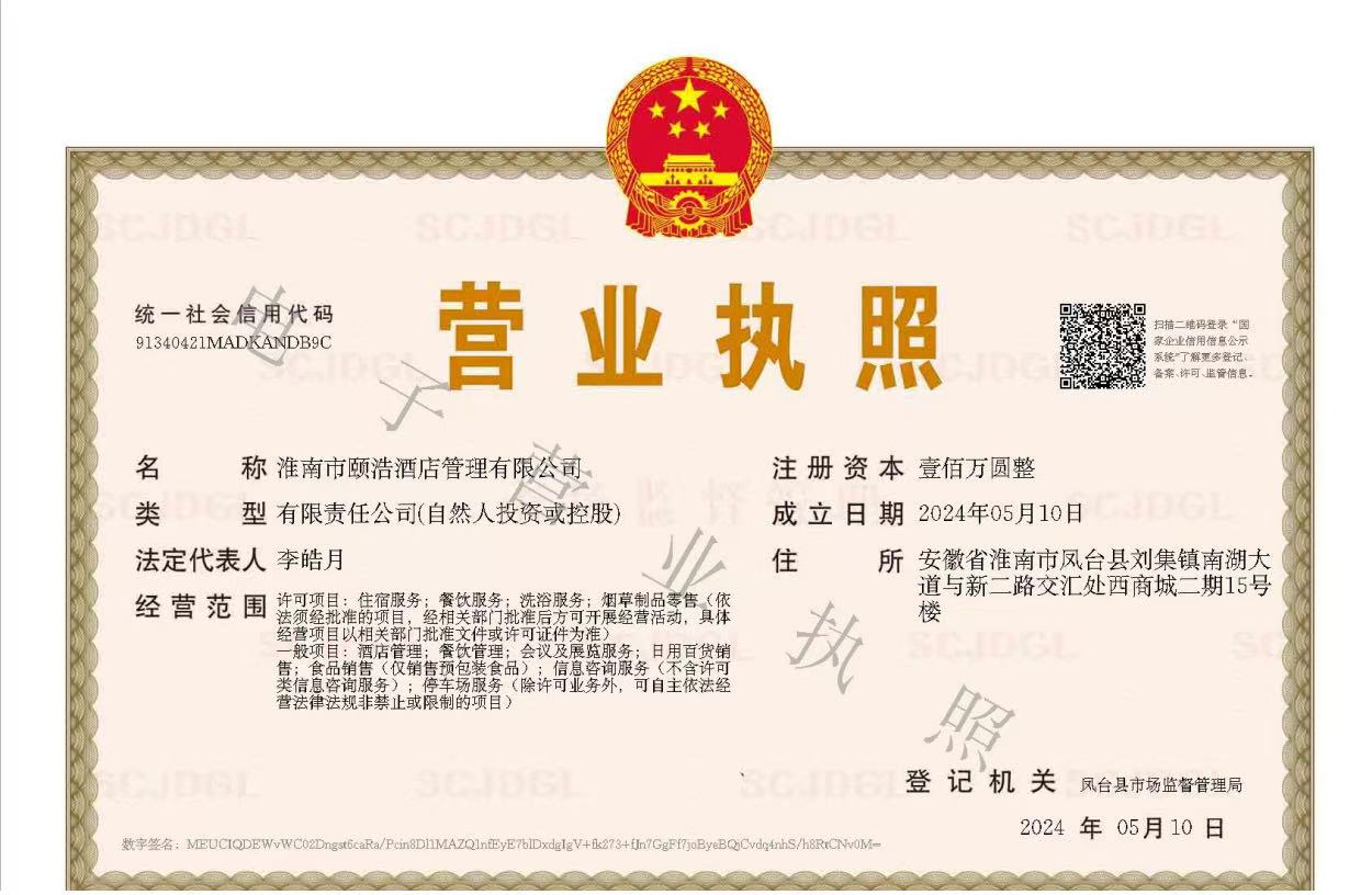 淮南市颐浩酒店管理有限公司入围2025-2026年安徽省党政机关会议场所保障服务开放式框架协议采购方案的结果公告