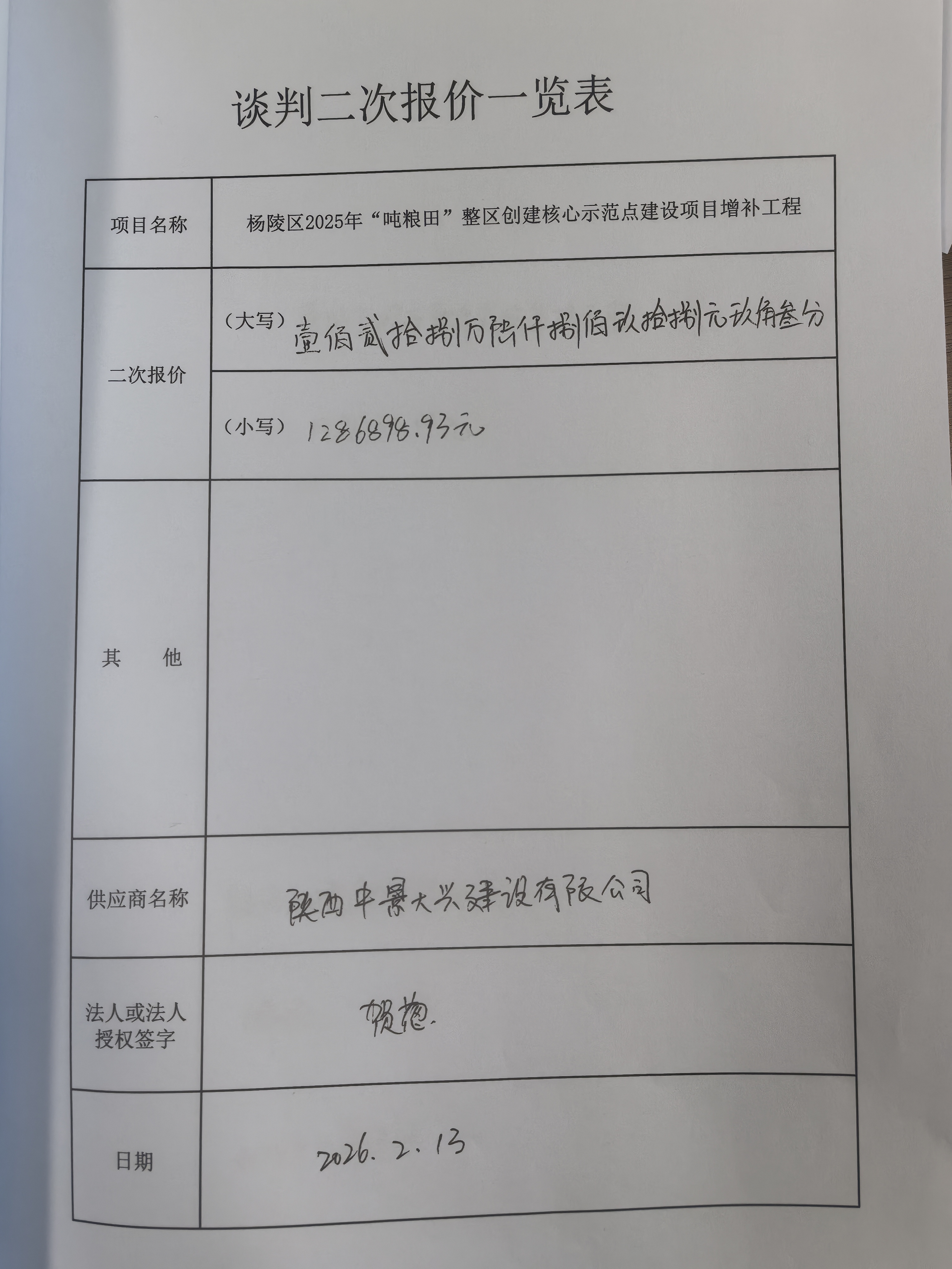 杨陵区农业技术推广服务中心杨陵区2025年“吨粮田”整区创建核心示范点建设项目增补工程中标(成交)结果公告
