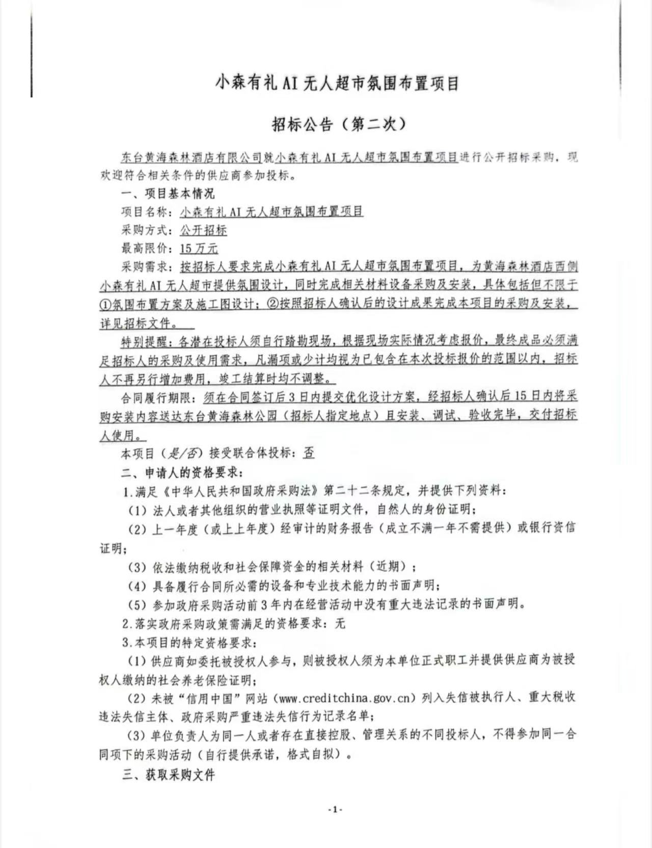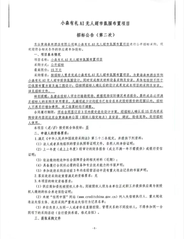 小森有礼AI无人超市氛围布置项目招标公告(第二次)