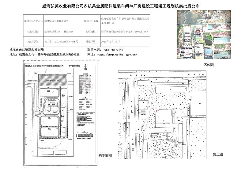 威海弘英农业有限公司农机具金属配件组装车间*#厂房建设工程竣工规划核实批后公布