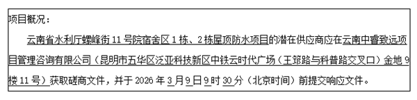 云南省水利厅螺峰街**号院宿舍区*栋、*栋屋顶防水项目竞争性磋商公告