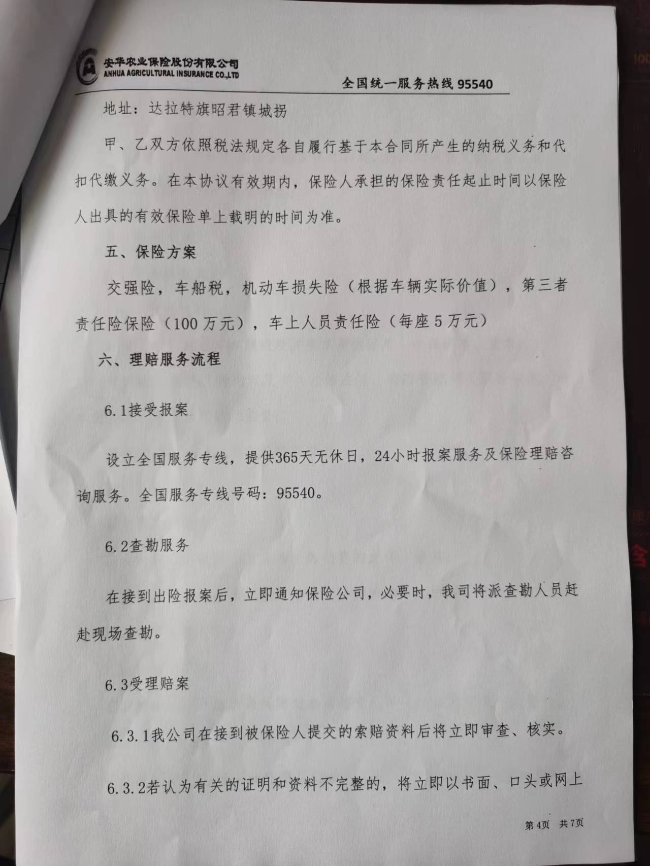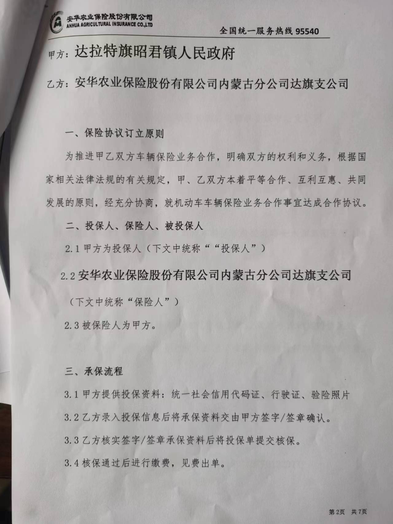 一、合同编号:***二、合同名称:保险协议三、项目编号:鄂财购备字(电子)[****]*******号四、项目名称:车辆保险服务(蒙******、蒙******)五、合同主体采购人(甲方):昭君镇人民政府 地址:鄂尔多斯市达拉特旗 联系方式:*********** 供应商(乙方):安华农业保险股份有限公司鄂尔多斯中心支公司 地址:内蒙古自治区鄂尔多斯市东胜区内蒙古自治区鄂尔多斯市东胜区吉劳庆北路金水源集团大厦***.***号 联系方式:*********** 六、合同主要信息主要标的: