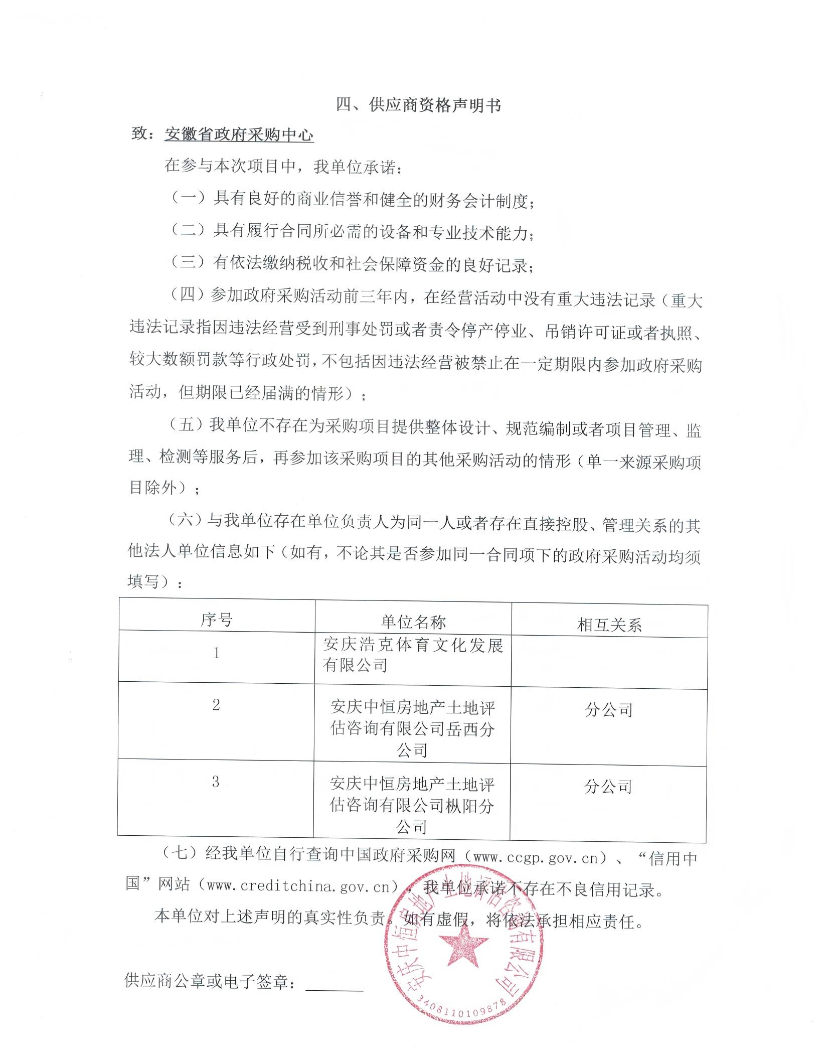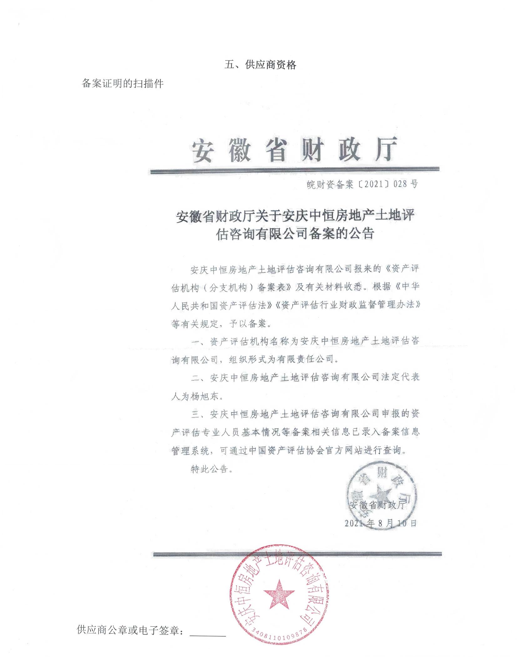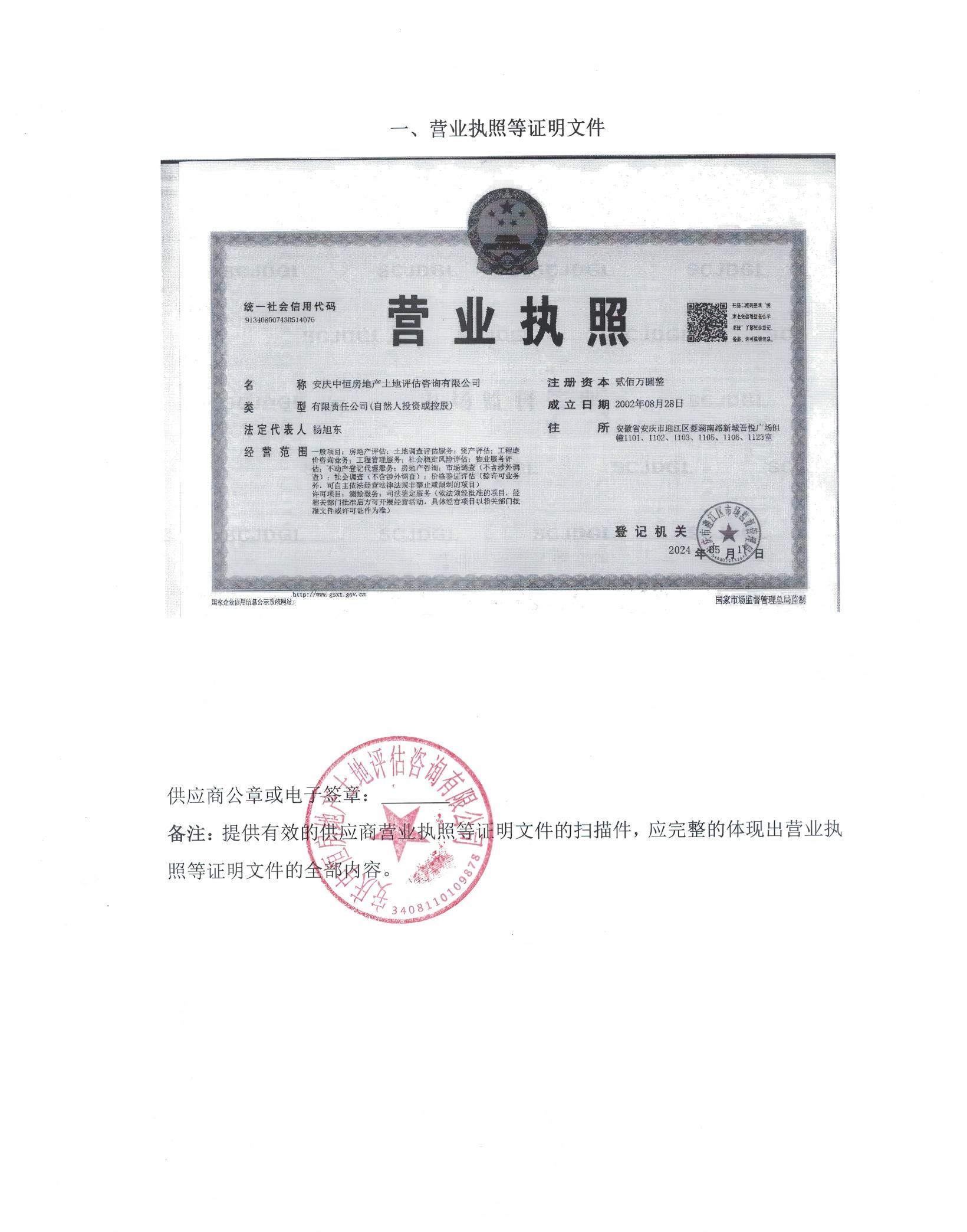 供应商名称:安庆中恒房地产土地评估咨询有限公司