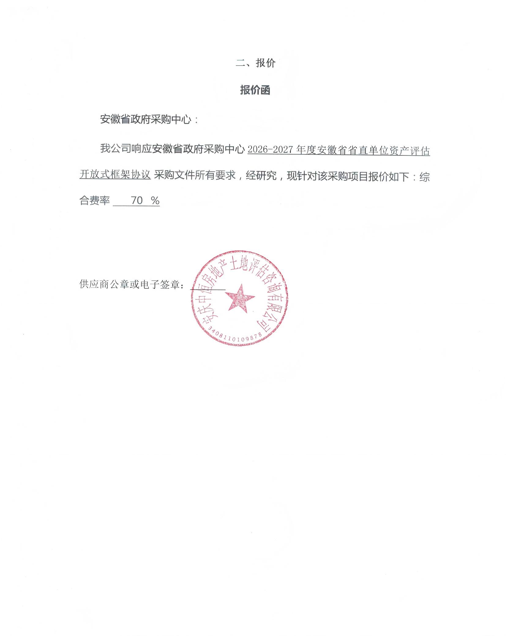 安庆中恒房地产土地评估咨询有限公司入围2026-2027年度安徽省省直单位资产评估开放式框架协议的结果公告