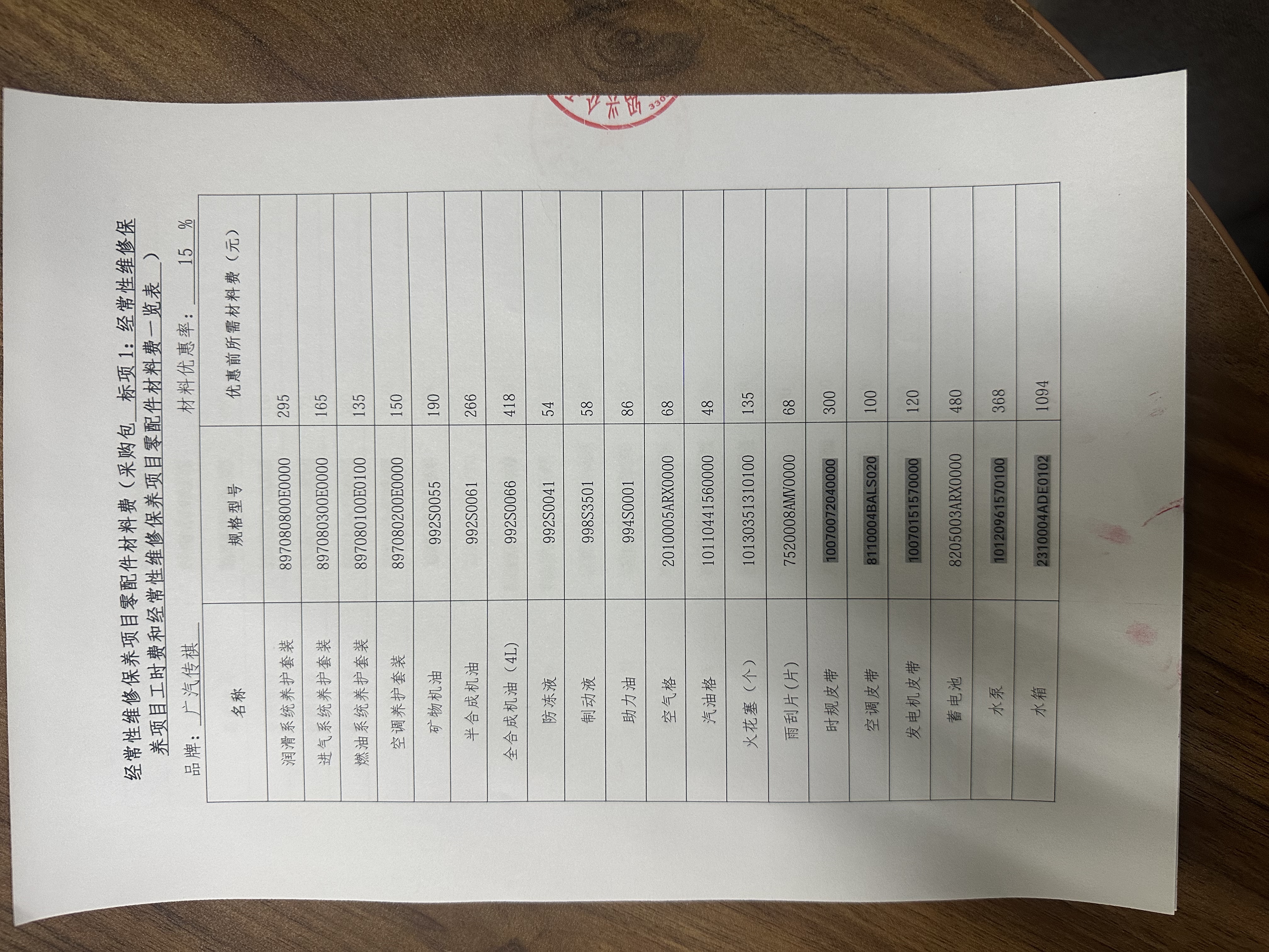 经常性维修保养项目零配件材料费:*.***