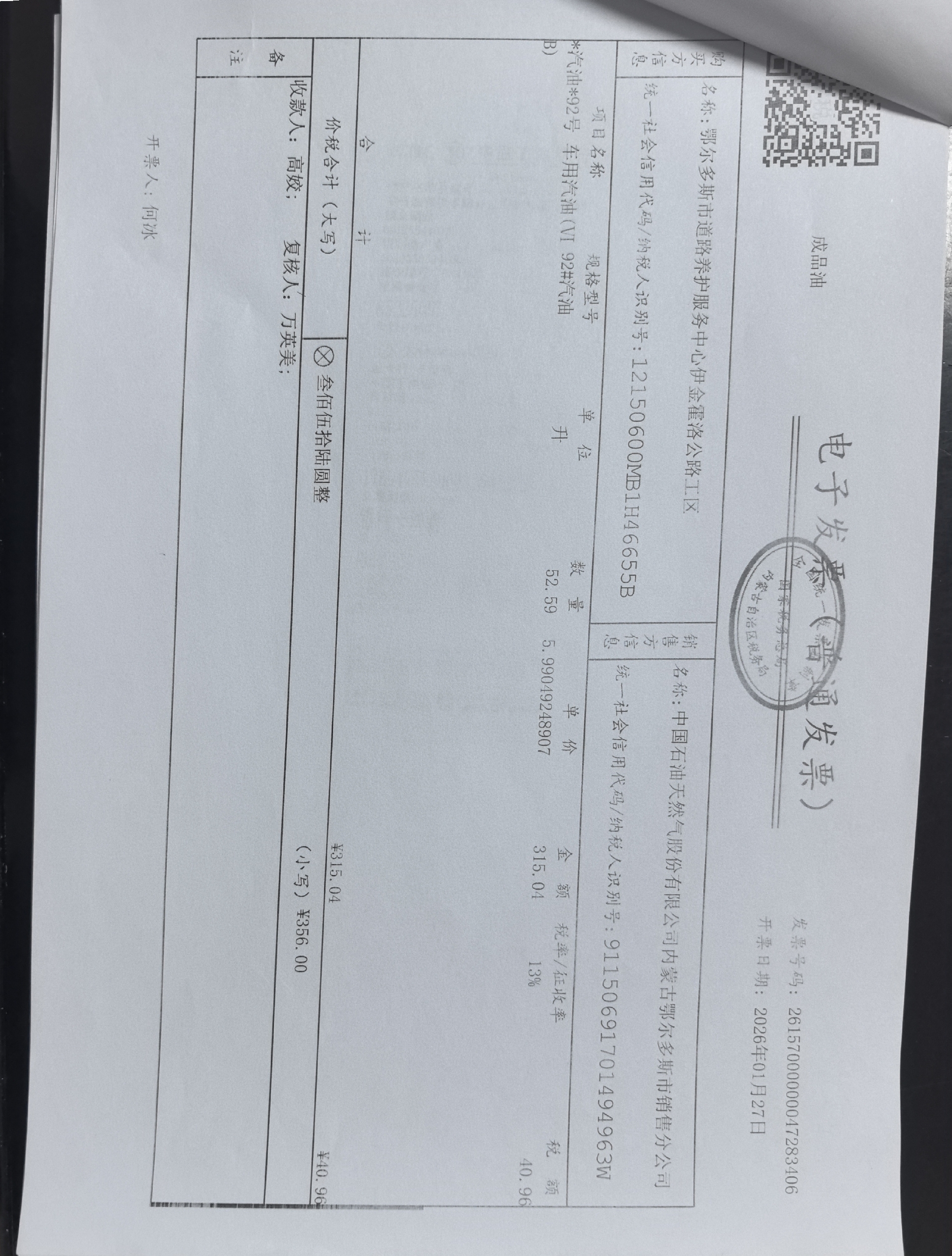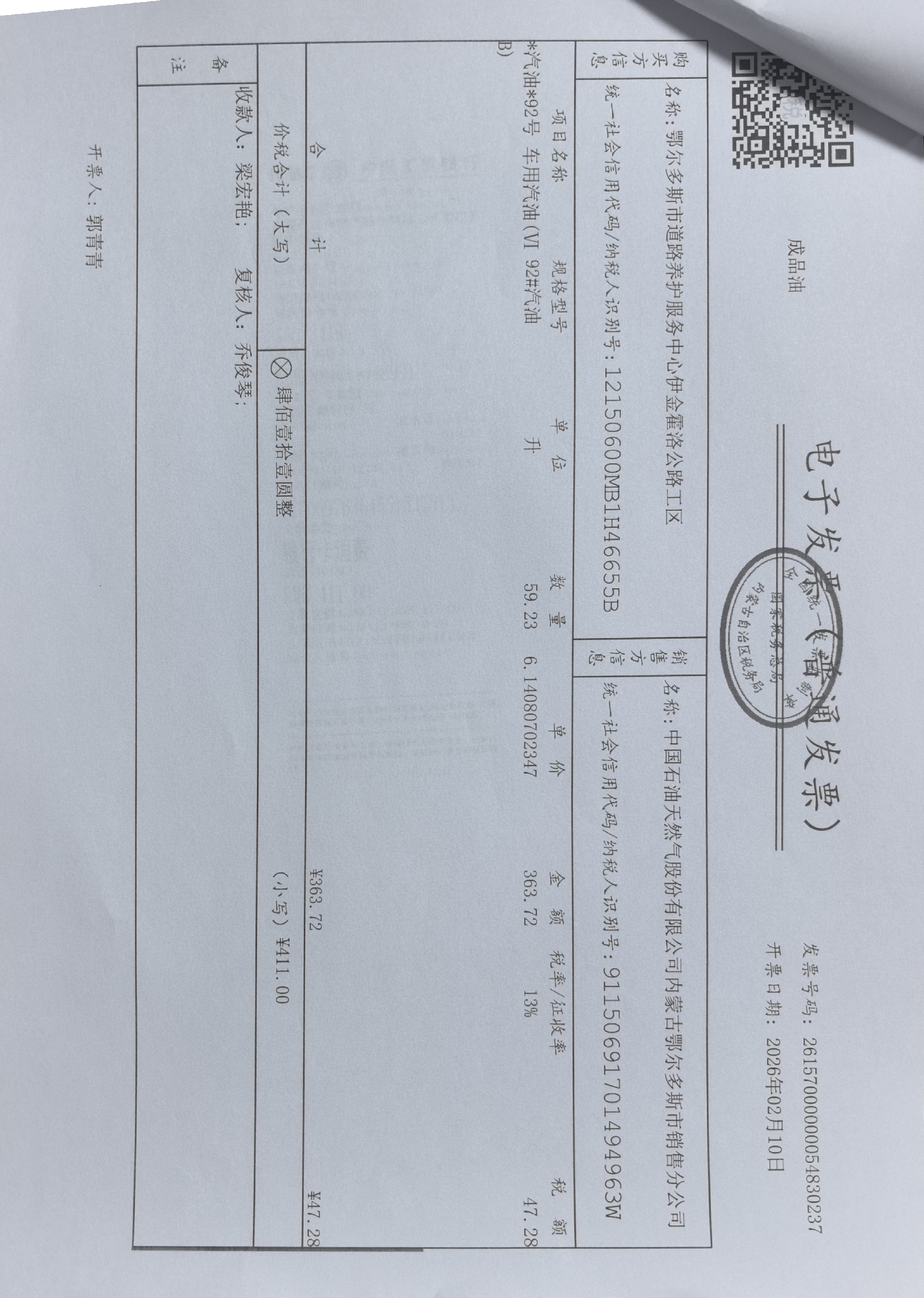 鄂尔多斯市道路养护服务中心伊金霍洛公路工区车辆加油服务(蒙KM709A)政府采购合同公告