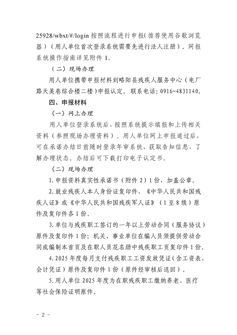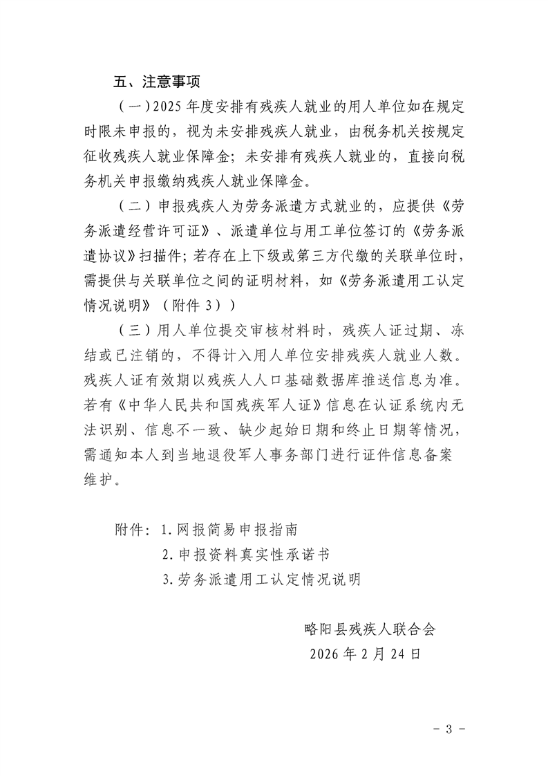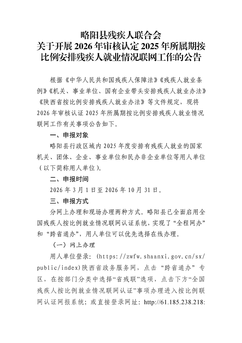 略阳县残疾人联合会关于开展2026年审核认定2025年所属期按比例安排残疾人就业情况联网工作的公告