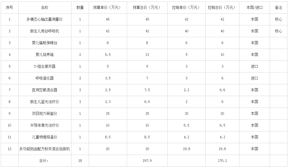 *.项目名称:山西白求恩医院(山西医学科学院)****年度新生儿科、预防保健科、儿科等设备购置项目
