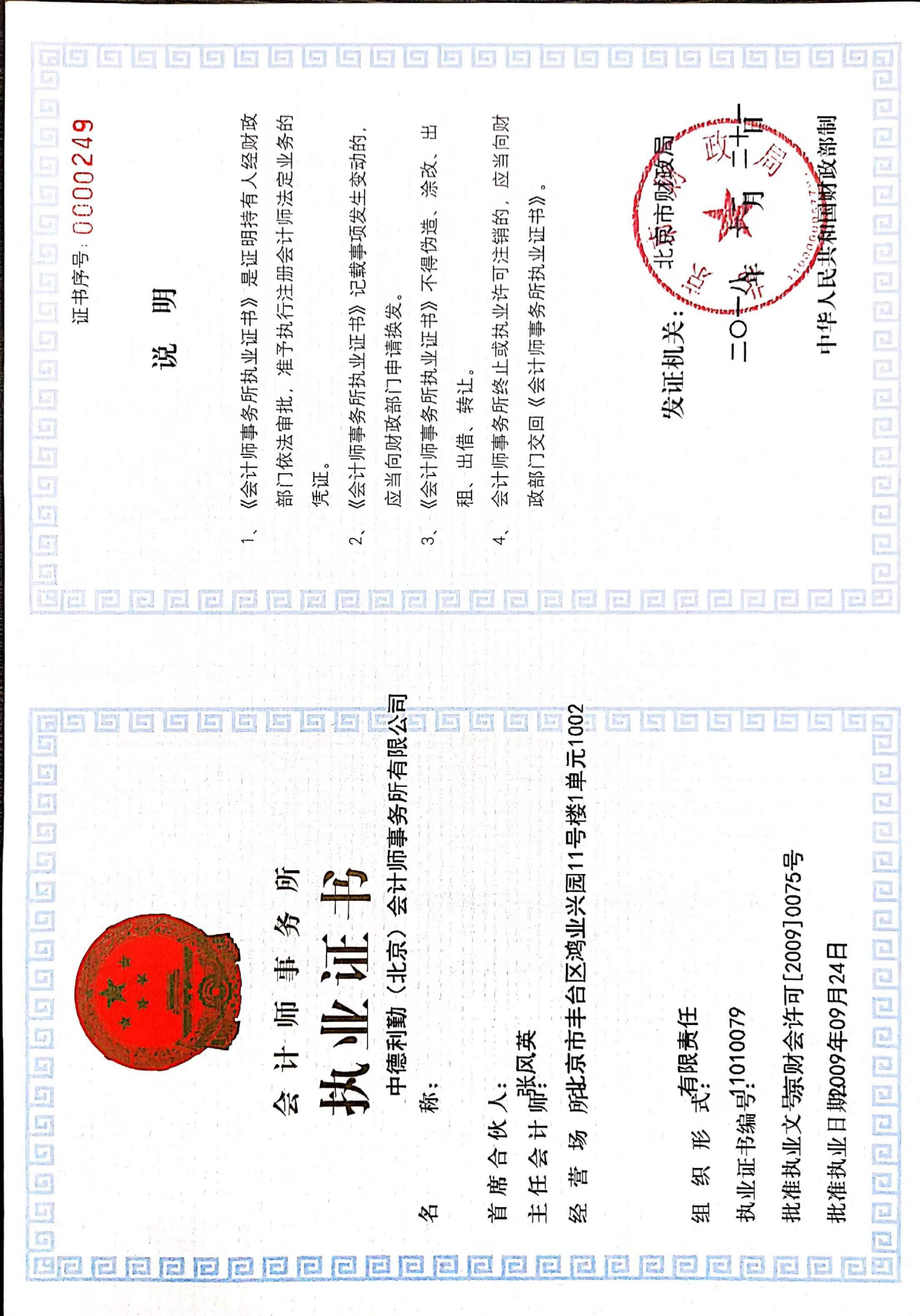 资质:会计事务所执业证书*.***