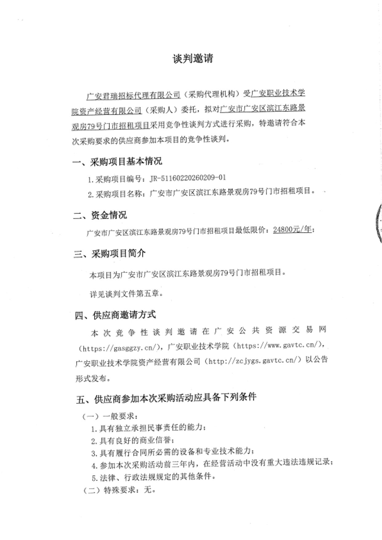 广安市广安区滨江东路景观房79号门市招租项目邀请公告