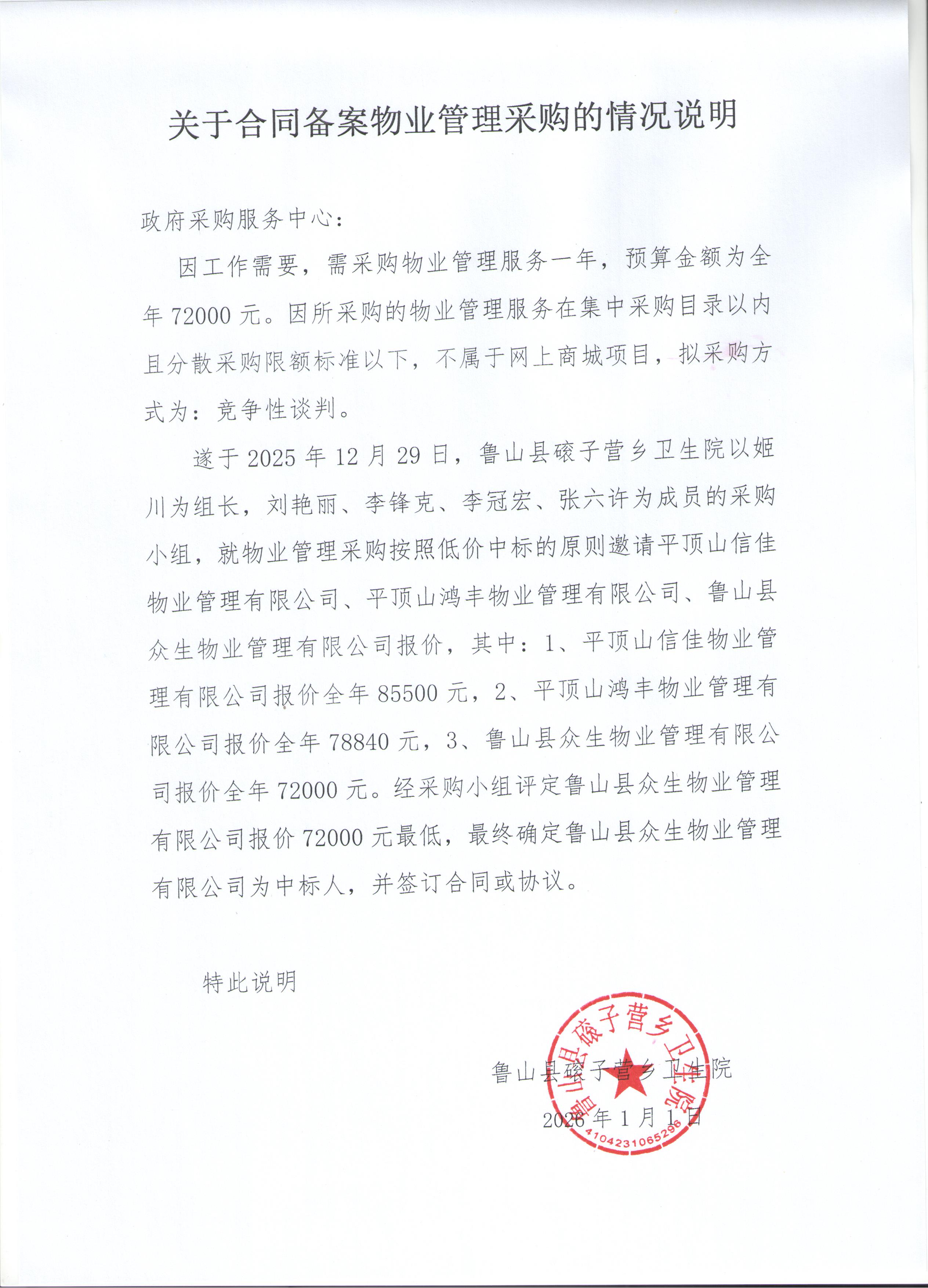 | *.供应商(乙方):鲁山县众生物业管理有限公司 | ||||||||||||