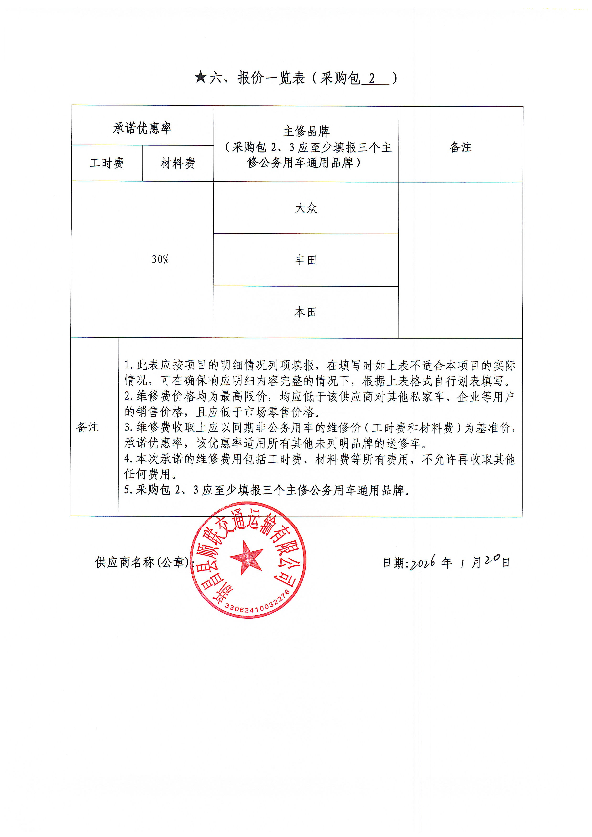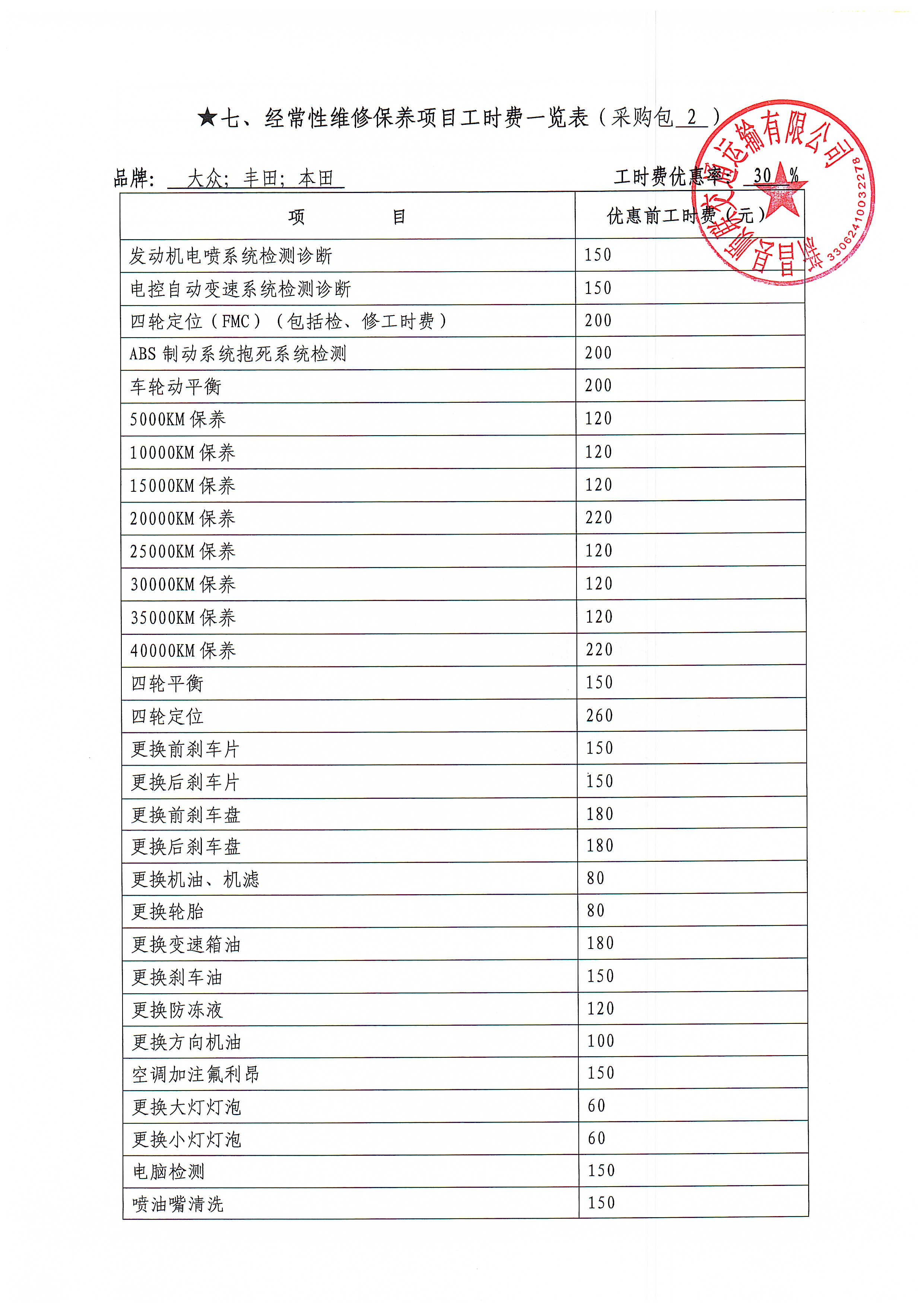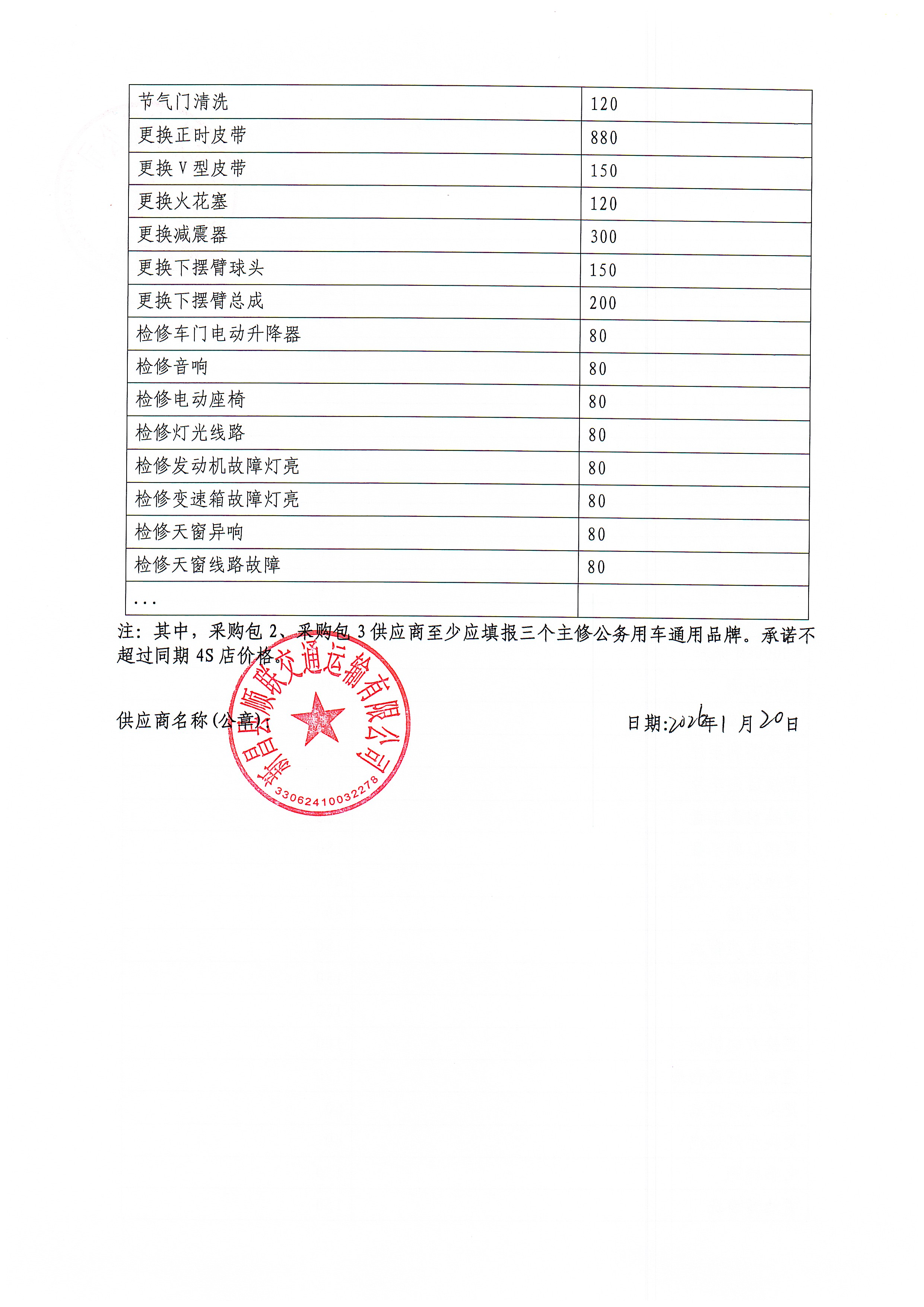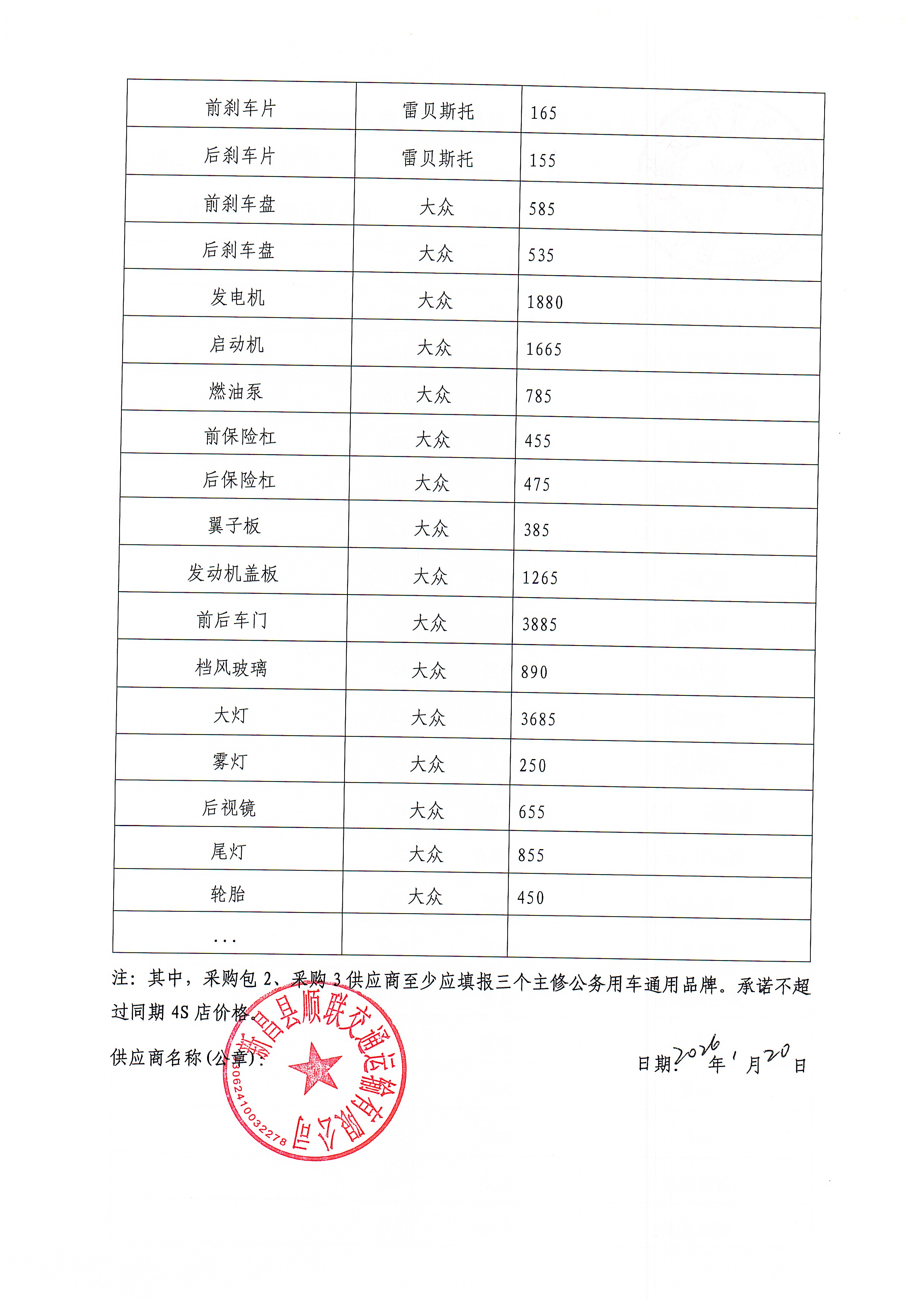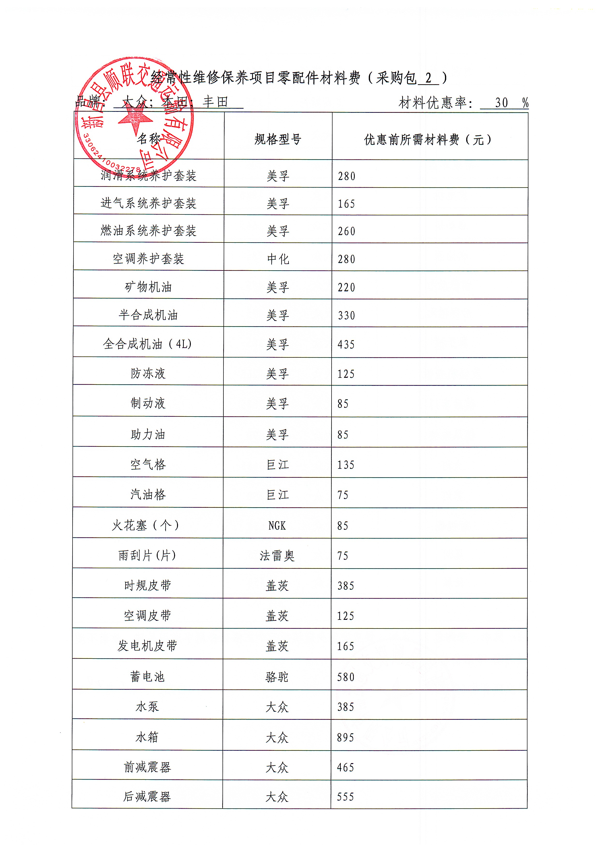 经常性维修保养项目零配件材料费:材料报价表 (*).***