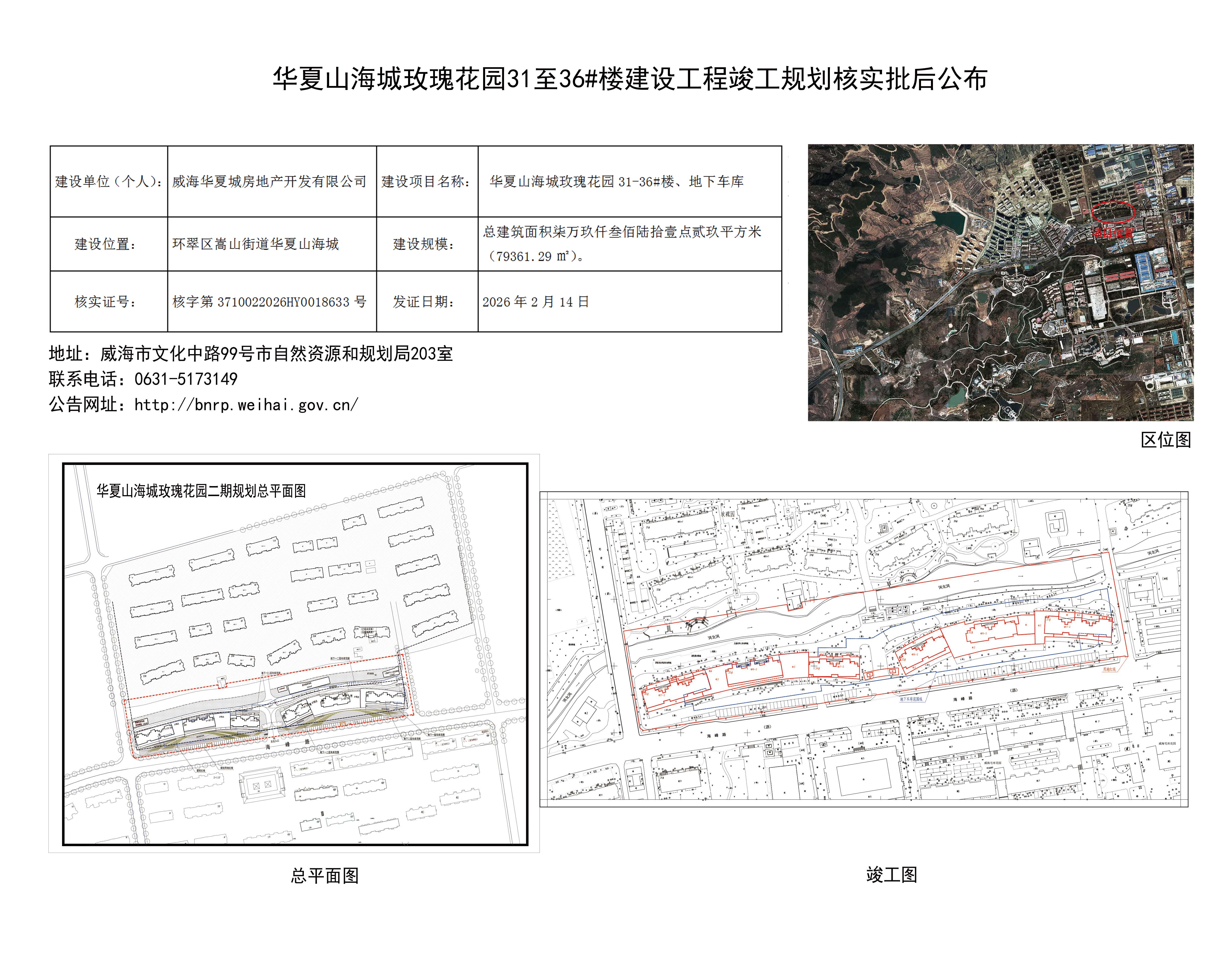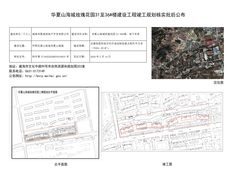 华夏山海城玫瑰花园31至36#楼建设工程竣工规划核实批后公布