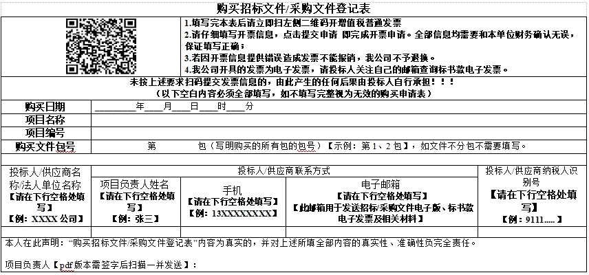 方式:请电汇购买议标文件。议标文件售价为***元人民币,售后不退。有兴趣的供应商可在*******日至*******日期间每个工作日下午**:**(北京时间)前汇款(不接受个人汇款)至采购代理机构指定账户,汇款时请必须注明*********标书款。汇款后请将汇款凭证和填写完毕的《购买招标文件/采购文件登记表》(*份可编辑的****版本*份不可编辑的***版本),同时以电子邮件形式发送至********@***.**.**。采购代理机构工作日当日**:**时前收到邮件的于当日发送议标文件电子版,**:**时后收到的将视为是下一个工作日收到的邮件。