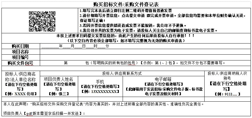 方式:请电汇购买议标文件。议标文件售价为***元人民币,售后不退。有兴趣的供应商可在*******日至*******日期间每个工作日下午**:**(北京时间)前汇款(不接受个人汇款)至采购代理机构指定账户,汇款时请必须注明*********标书款。汇款后请将汇款凭证和填写完毕的《购买招标文件/采购文件登记表》(*份可编辑的****版本*份不可编辑的***版本),同时以电子邮件形式发送至********@***.**.**。采购代理机构工作日当日**:**时前收到邮件的于当日发送议标文件电子版,**:**时后收到的将视为是下一个工作日收到的邮件。