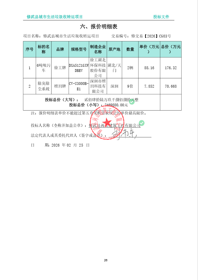| *、采购项目名称:修武县城市生活垃圾收转运项目 | |||||||||||||||||||||||||||||||