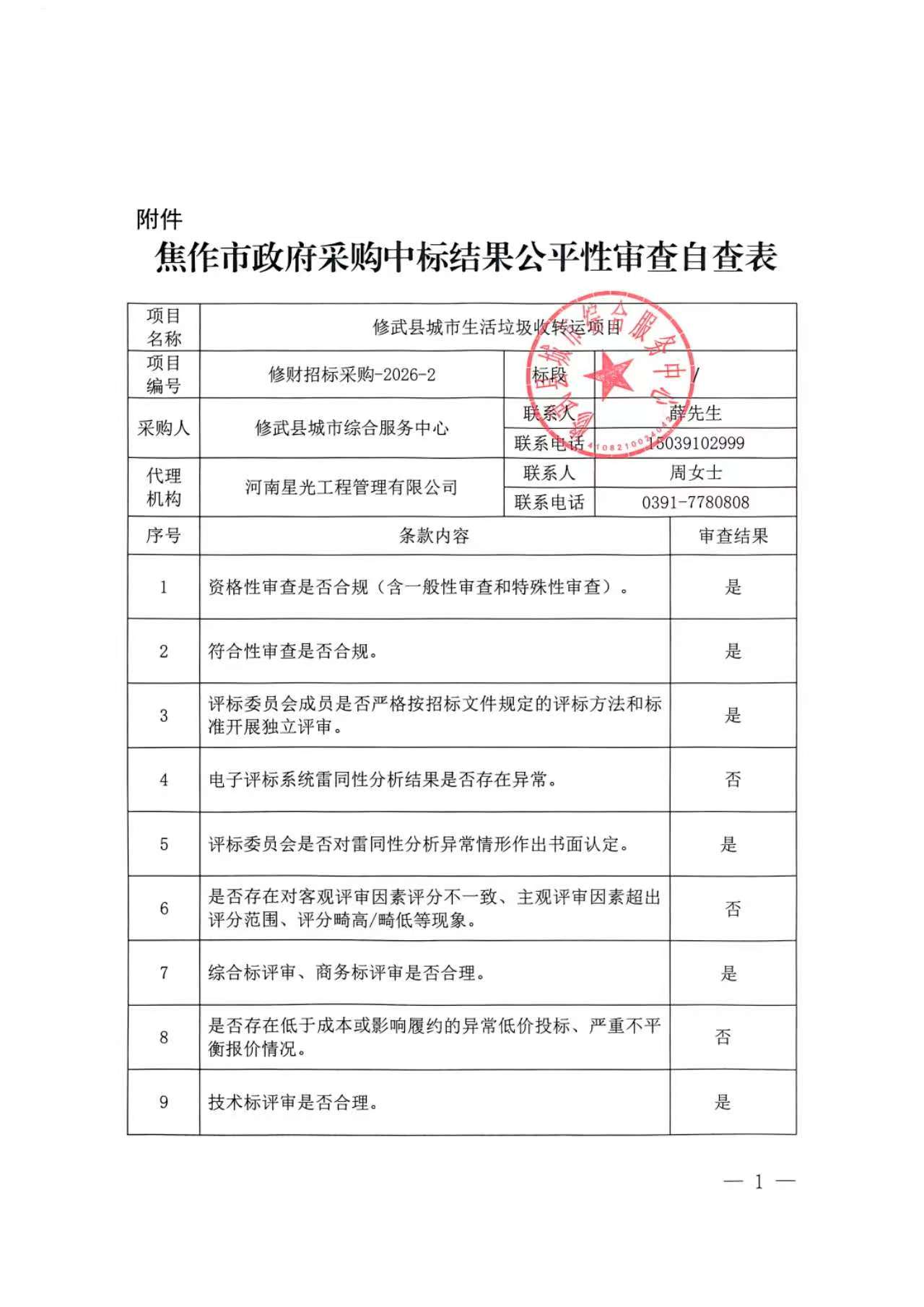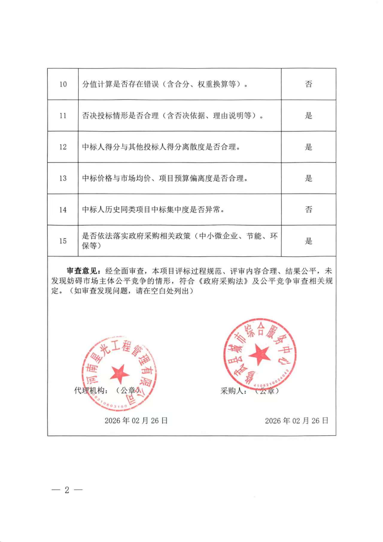 | *、供应商得分及排序:排序*.修武县两山建筑工程有限公司,得分**.**分;排序*.河南国优能源有限公司,得分**.**分;排序*.河南省大旗供应链管理有限公司,得分**.**分。 *、废标情况:河南鼎源机械设备有限公司,授权委托书未按要求提供委托代理人签字或盖章,投标承诺函未按要求提供投标人代表签字或名章。 *、各有关当事人对中标(成交)结果公告有异议的,可以在公告期限届满之日起七个工作日内,以书面形式向采购人或采购代理机构提出质疑,并以供应商提交的质疑函接受确认日期作为受理时间,逾期未提交的不再受理。 | |||||||||||||||||||||||||||||||