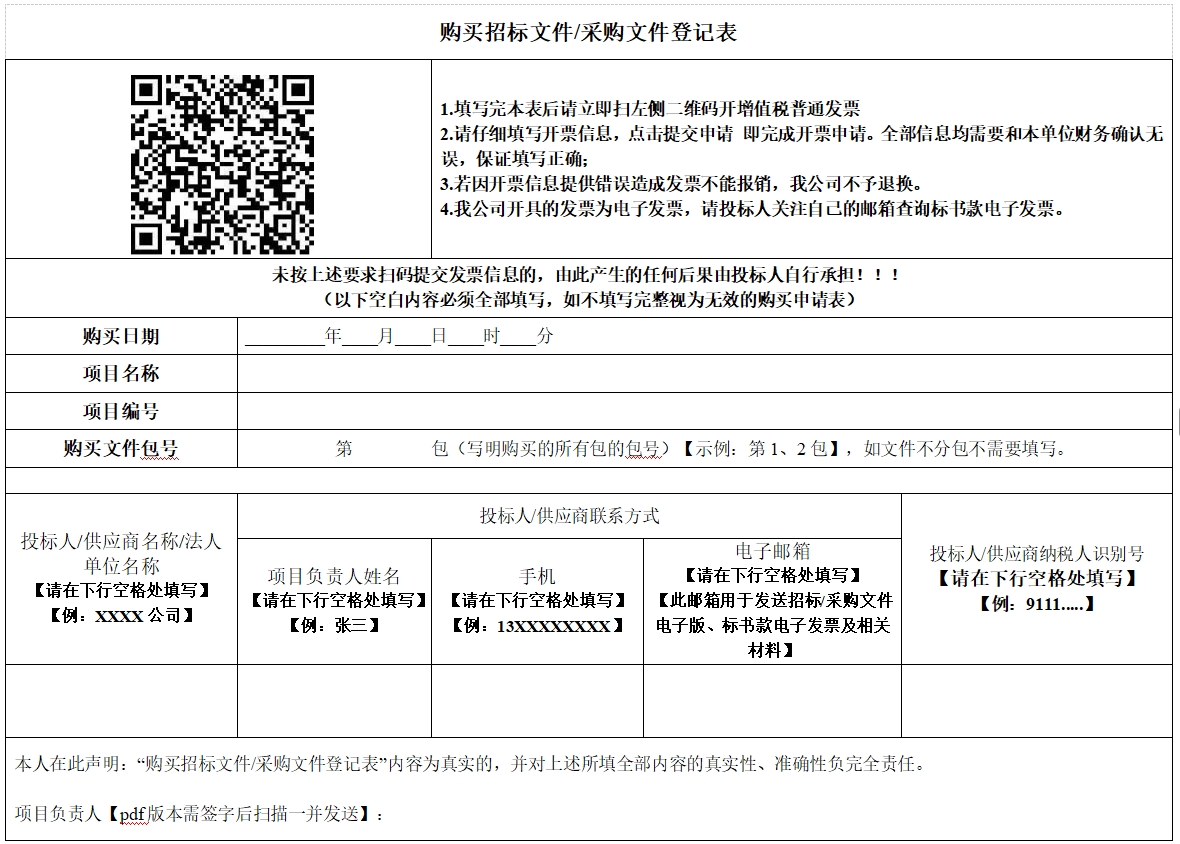方式:请电汇购买议标文件。议标文件售价为***元人民币,售后不退。有兴趣的供应商可在****年*月**日至****年*月**日期间每个工作日下午**:**(北京时间)前汇款(不接受个人汇款)至采购代理机构指定账户,汇款时请必须注明“*********标书款”。汇款后请将汇款凭证和填写完毕的《购买招标文件/采购文件登记表》(*份可编辑的****版本及*份不可编辑的***版本),同时以电子邮件形式发送至********@***.**.**。采购代理机构工作日当日**:**时前收到邮件的于当日发送议标文件电子版,**:**时后收到的将视为是下一个工作日收到的邮件。