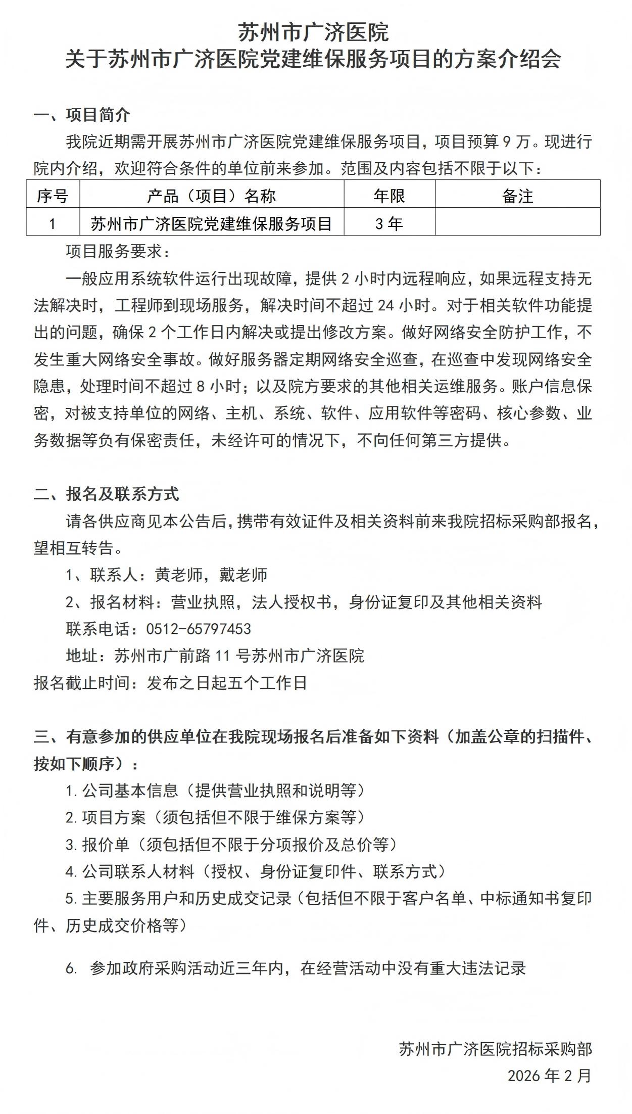 苏州市广济医院关于苏州市广济医院党建维保服务项目的方案介绍会