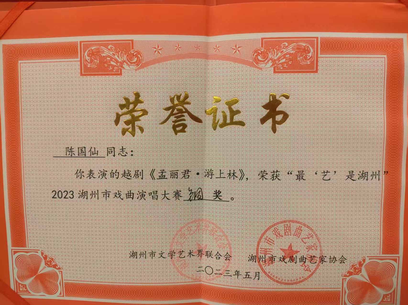 二级演职人员或获设区市级专业奖项荣誉演员:*
