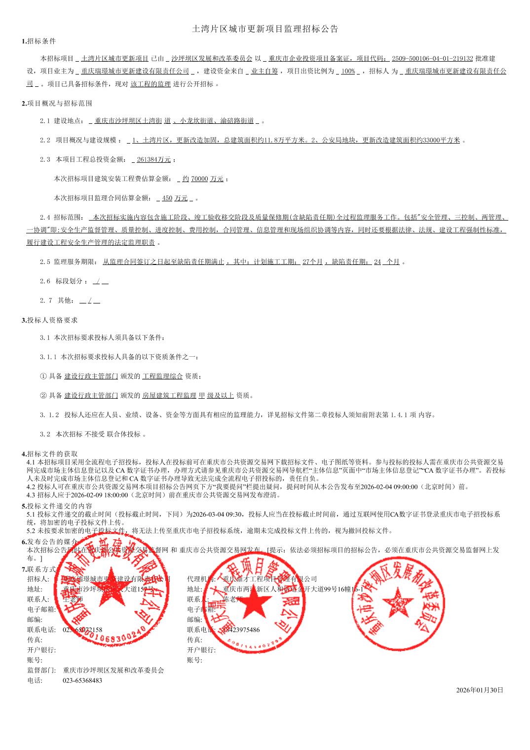 | 名称: | 土湾片区城市更新项目监理招标公告 | ||||