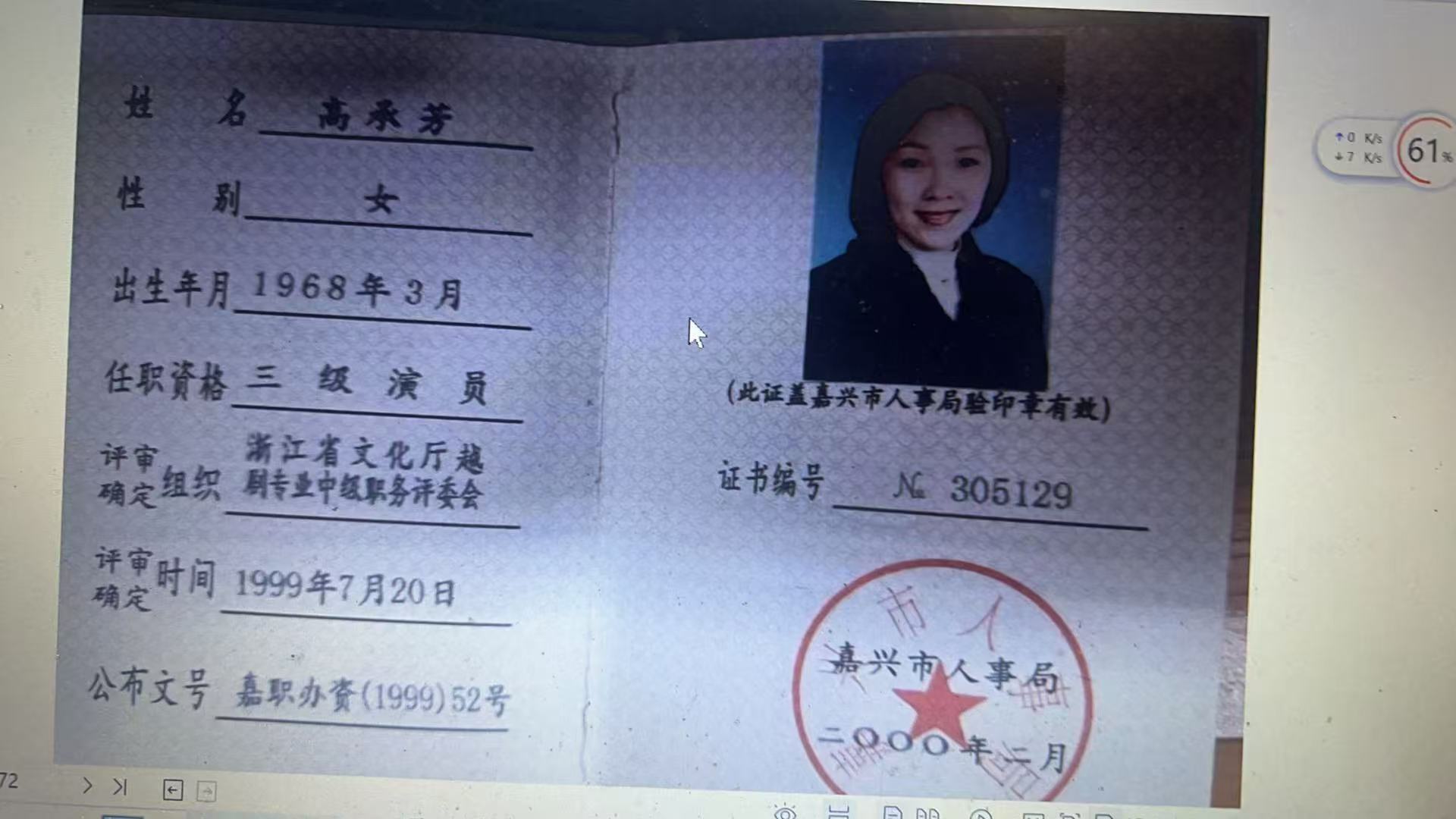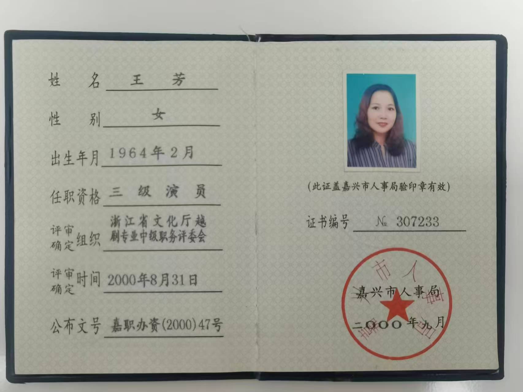 三级演员证书*.***