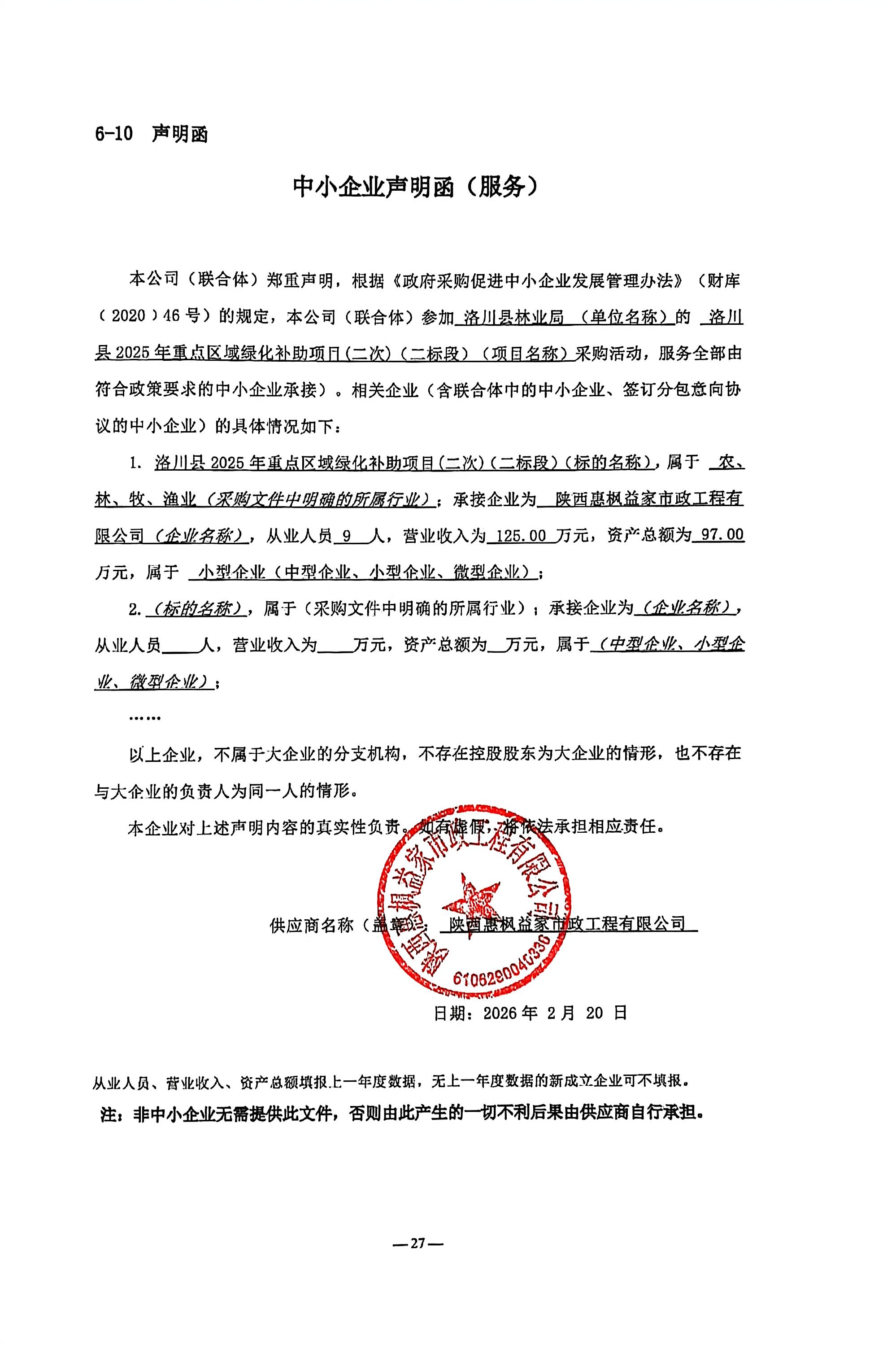 服务类(陕西惠枫益家市政工程有限公司)
