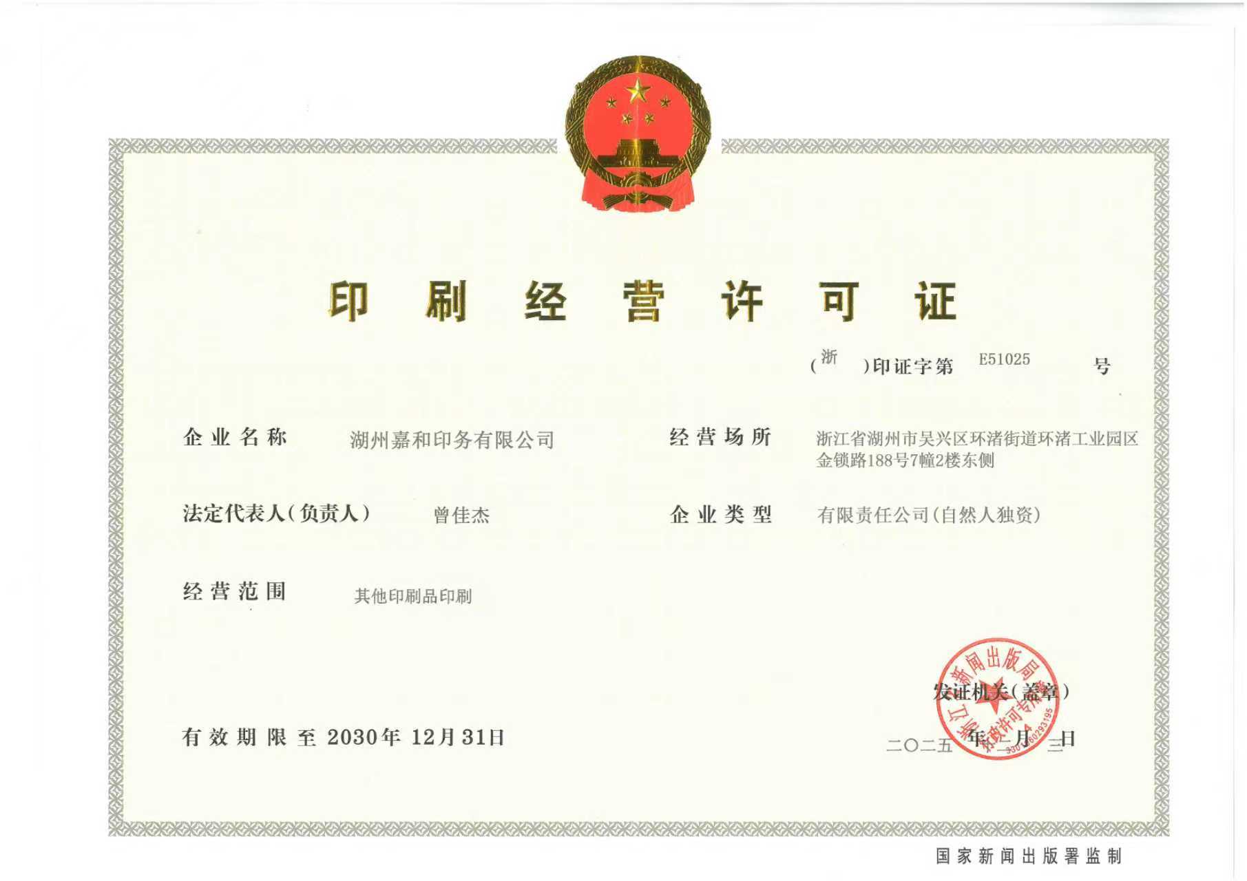 湖州嘉和印务有限公司印刷服务(《印刷业管理条例》其他印刷品