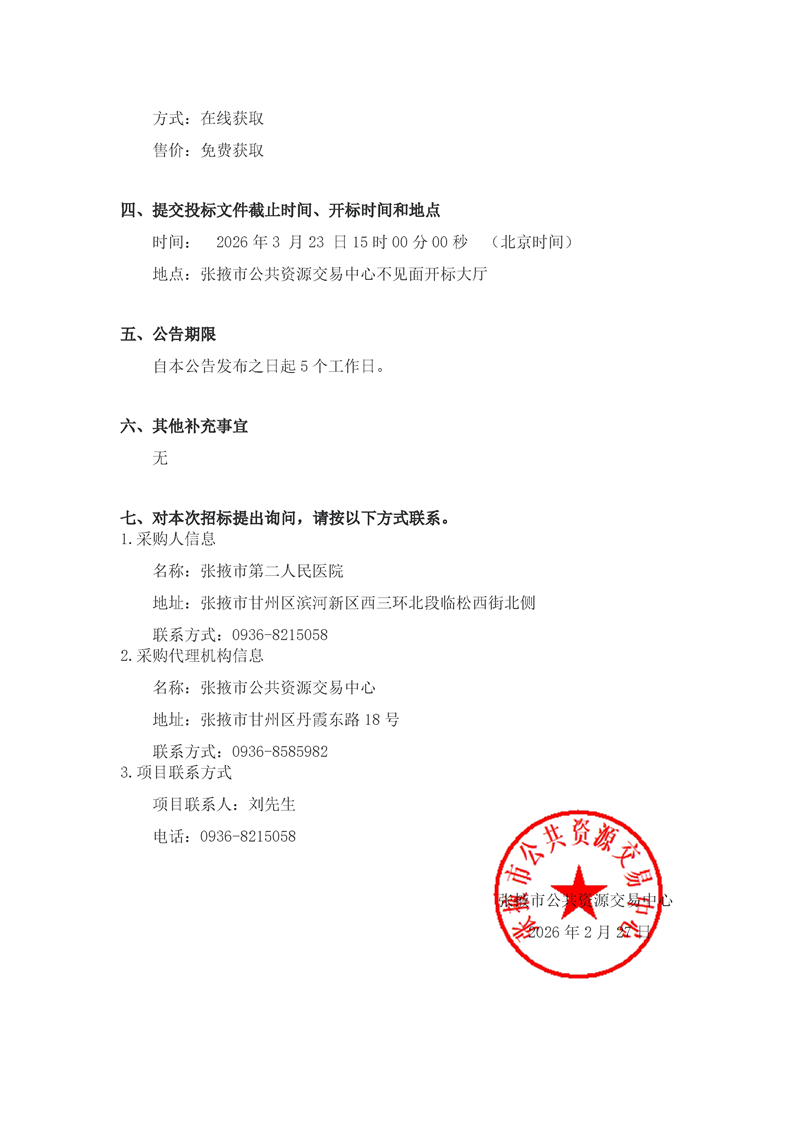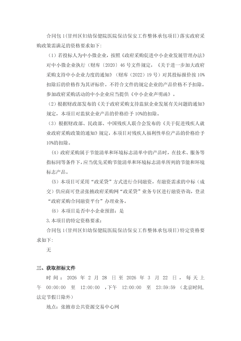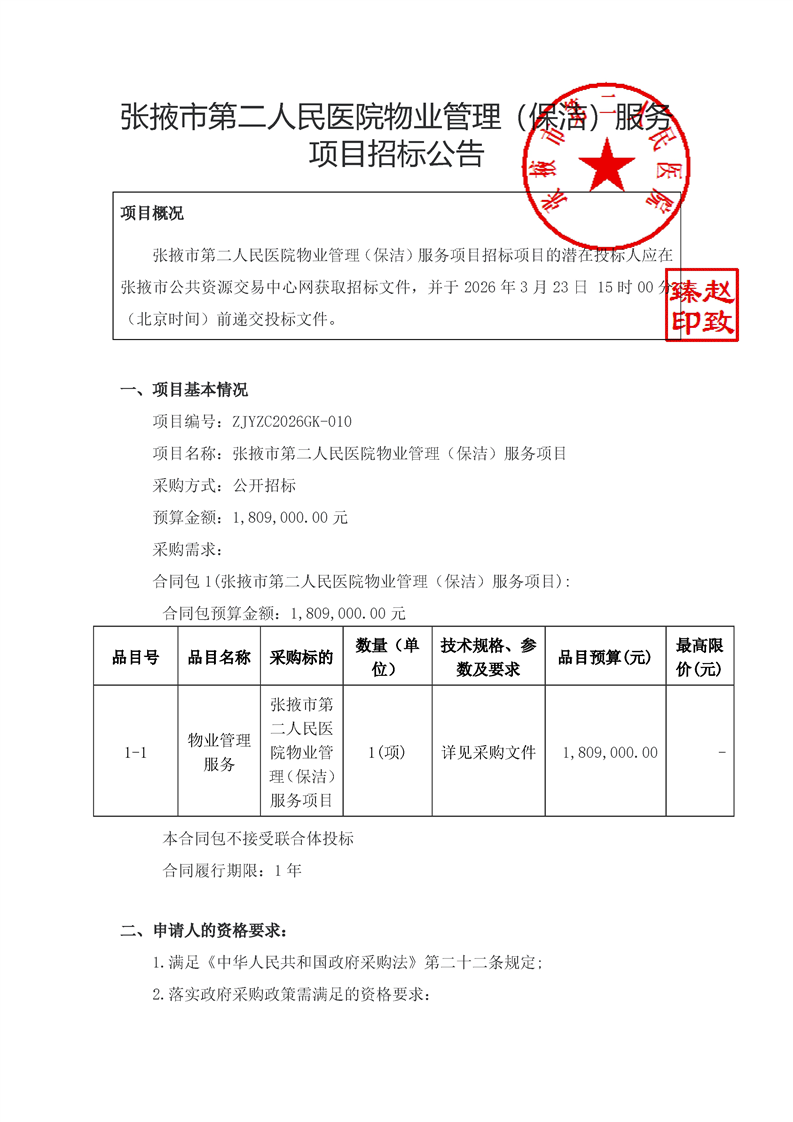 张掖市第二人民医院物业管理(保洁)服务项目招标公告[采购/资审公告]