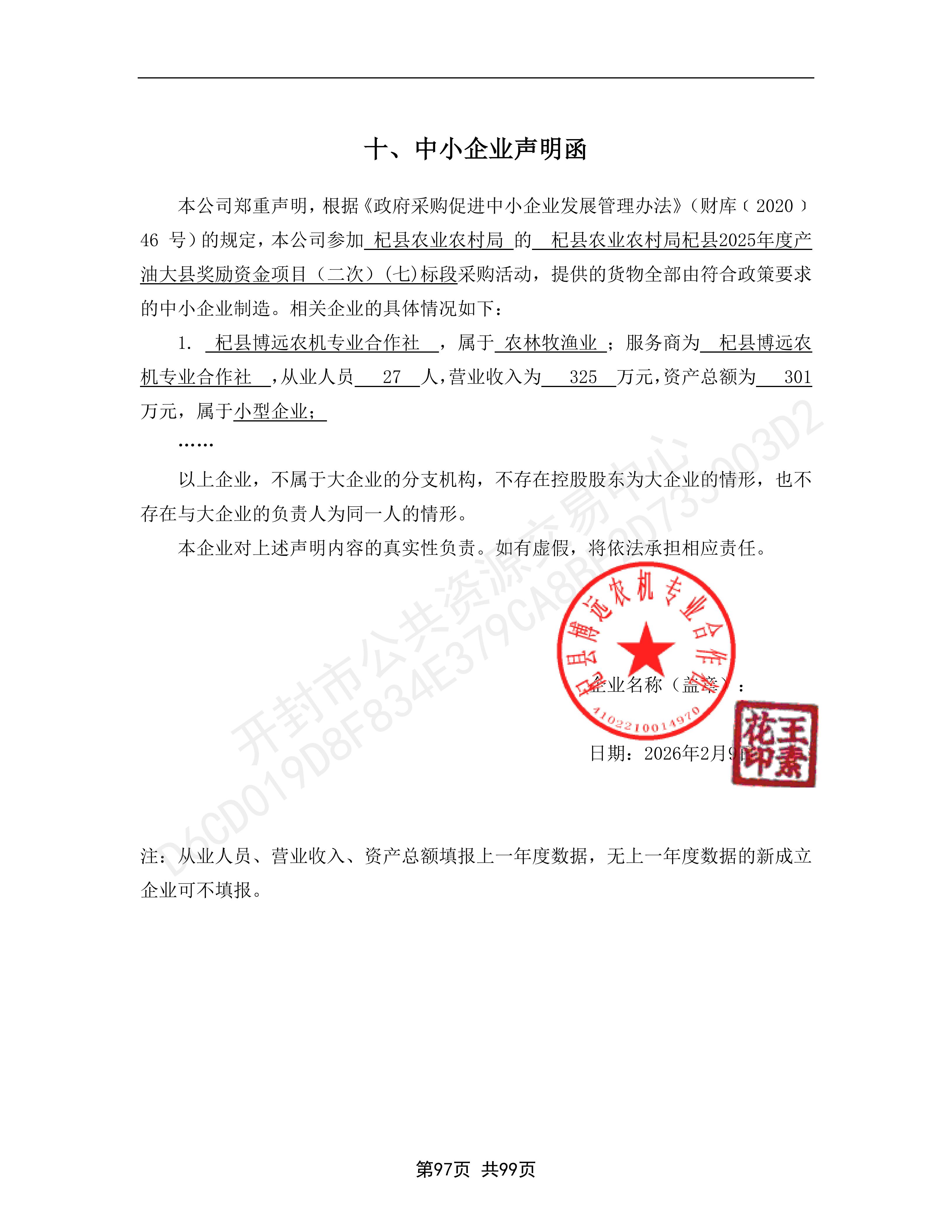 杞县农业农村局杞县2025年度产油大县奖励资金项目二次(七标段)结果公告