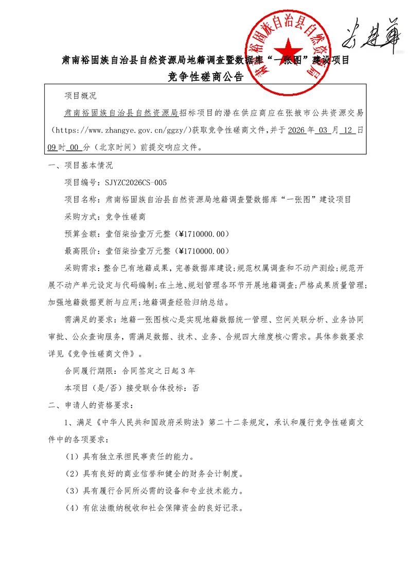 肃南裕固族自治县自然资源局地籍调查暨数据库“一张图”建设项目竞争性磋商文件[采购/资审公告]