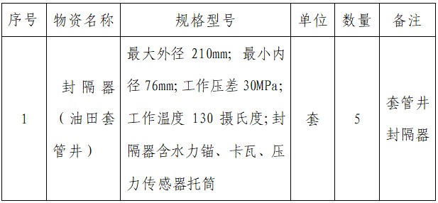 *.采购项目名称:封隔器采购项目
