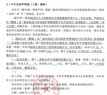 *.供应商名称:深圳天致信息工程咨询有限公司