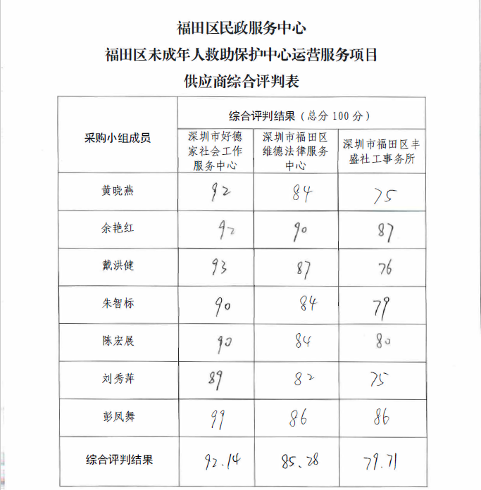 *月**日,向有关单位发出采购邀请函,并于*月**日分别收到深圳市福田区丰盛社工事务所、深圳市福田区维德法律服务中心、深圳市好德家社会工作服务中心三家单位的响应文件。