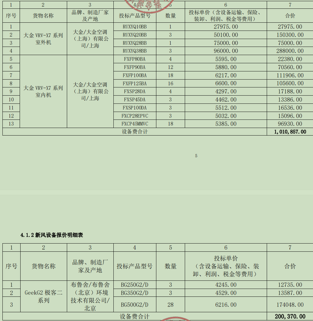 序号 包名称 标的名称 品牌 规格型号 数量 单价 * 二期维修工程配套空调机组 二期维修工程配套空调机组 大金 *********、*********、*********、*********等,详见附件 * *******.** 五、评审专家(单一来源采购人员)名单: