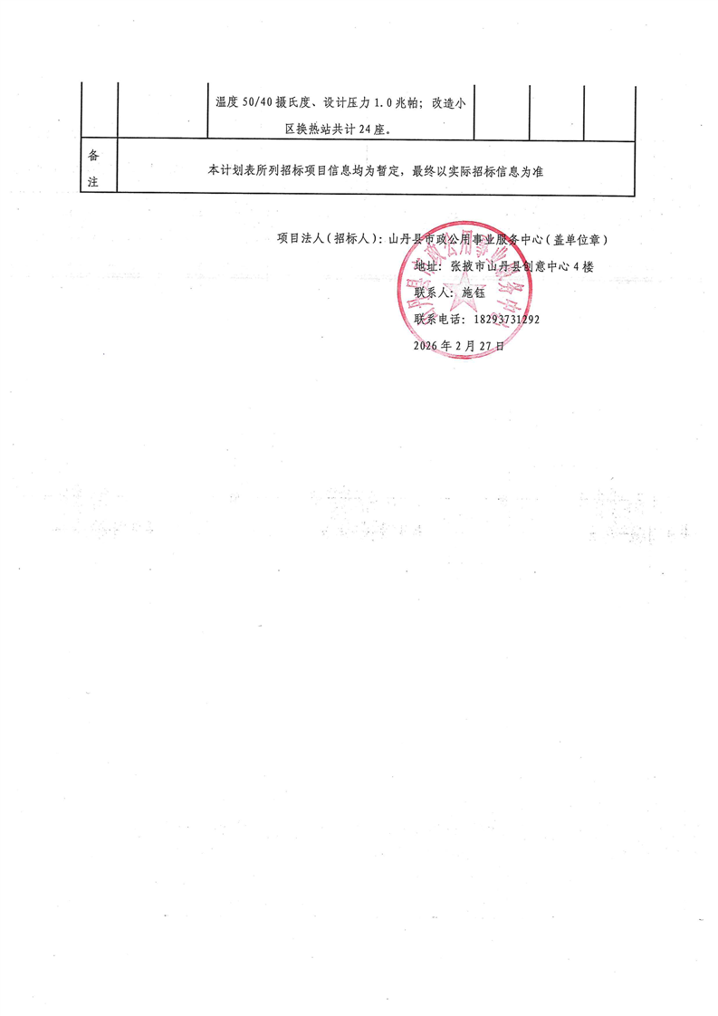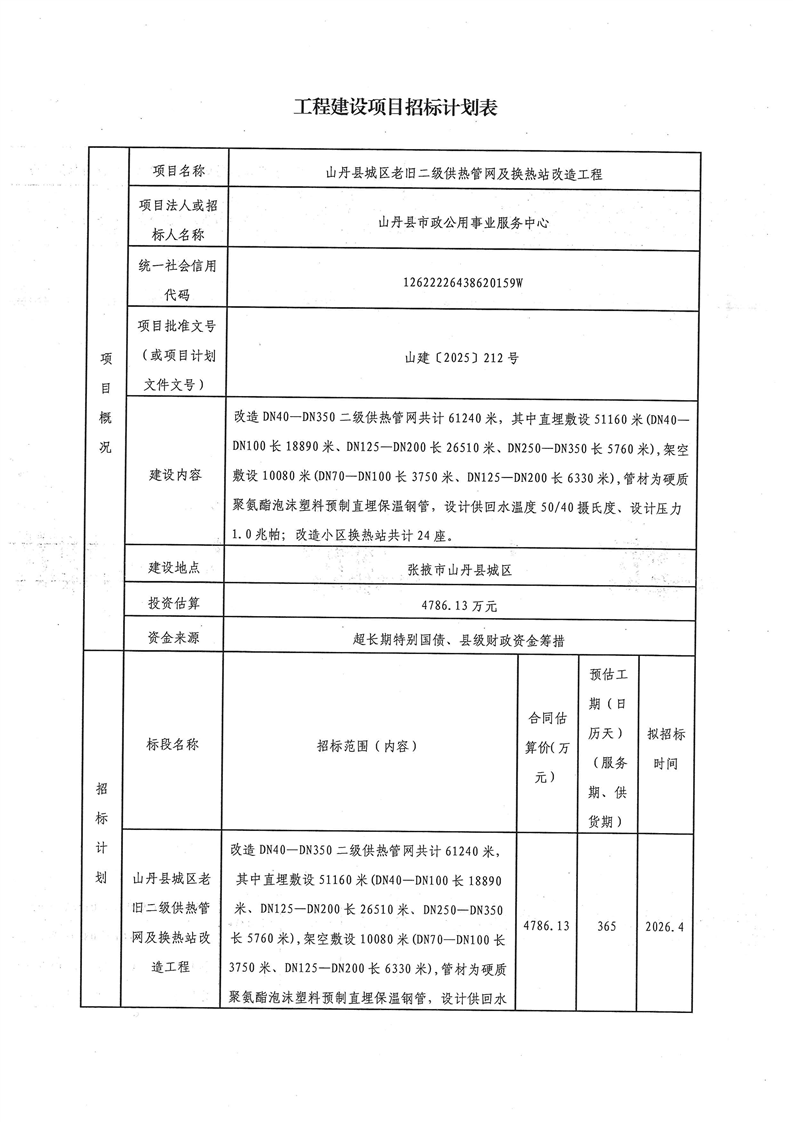 山丹县城区老旧二级供热管网及换热站改造工程招标计划