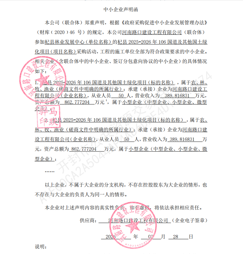杞县2025-2026年106国道及其他国土绿化项目(第二标段)成交公告