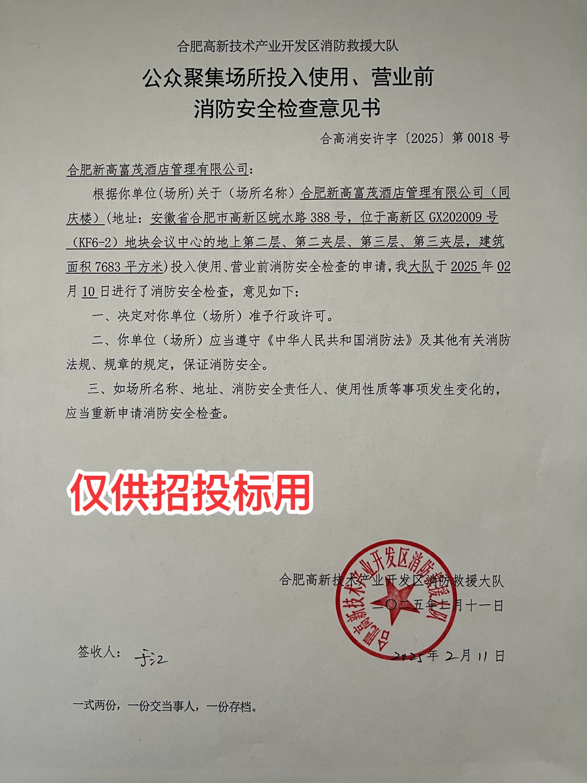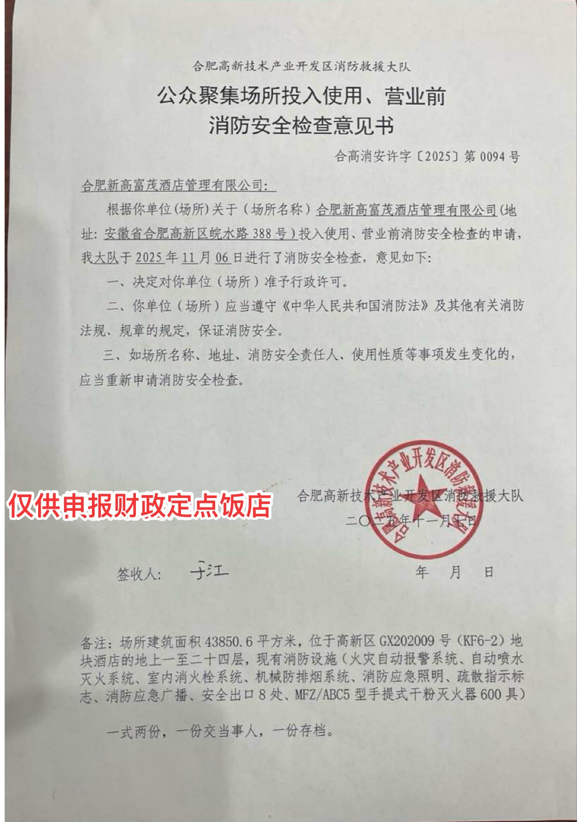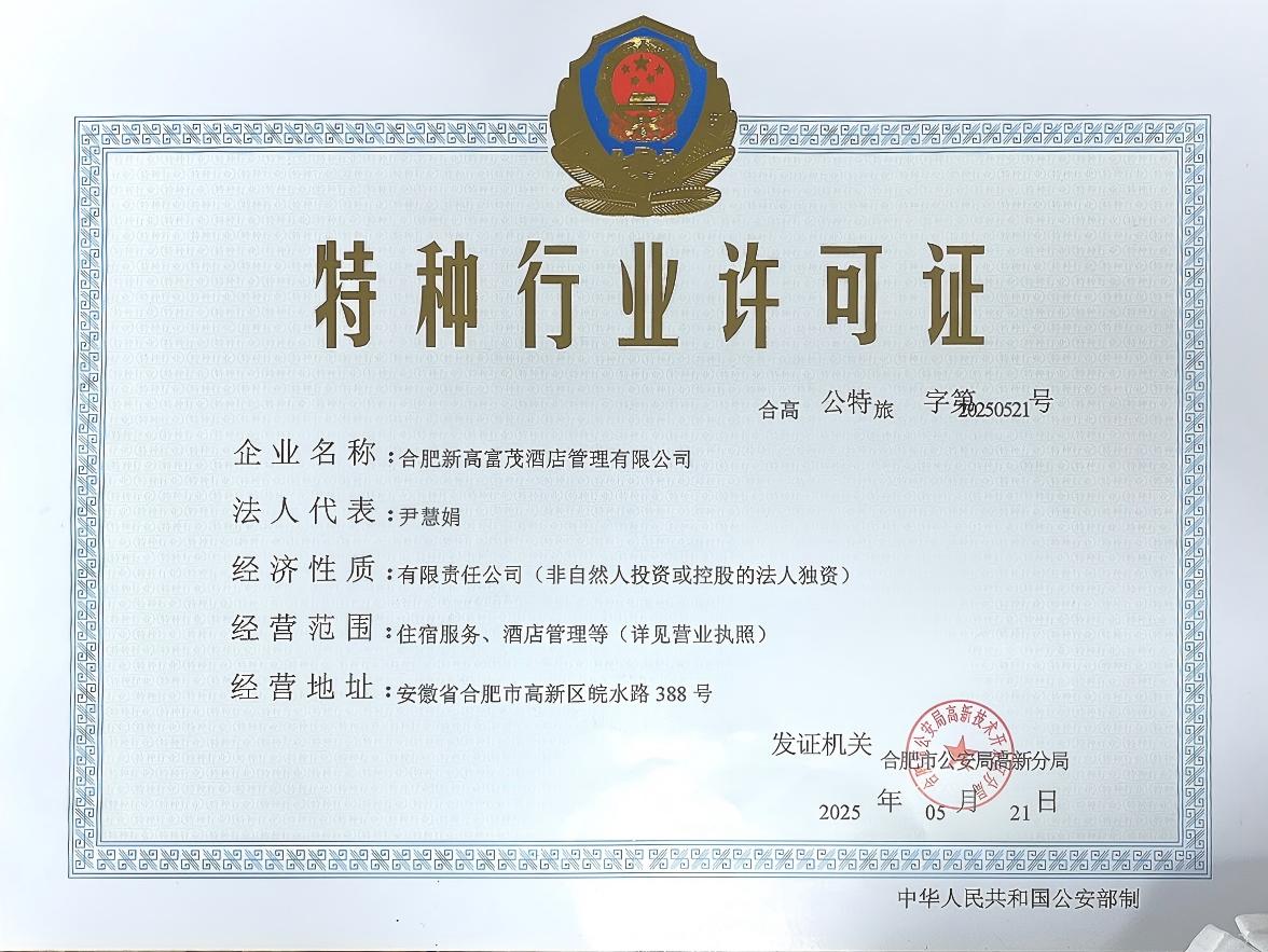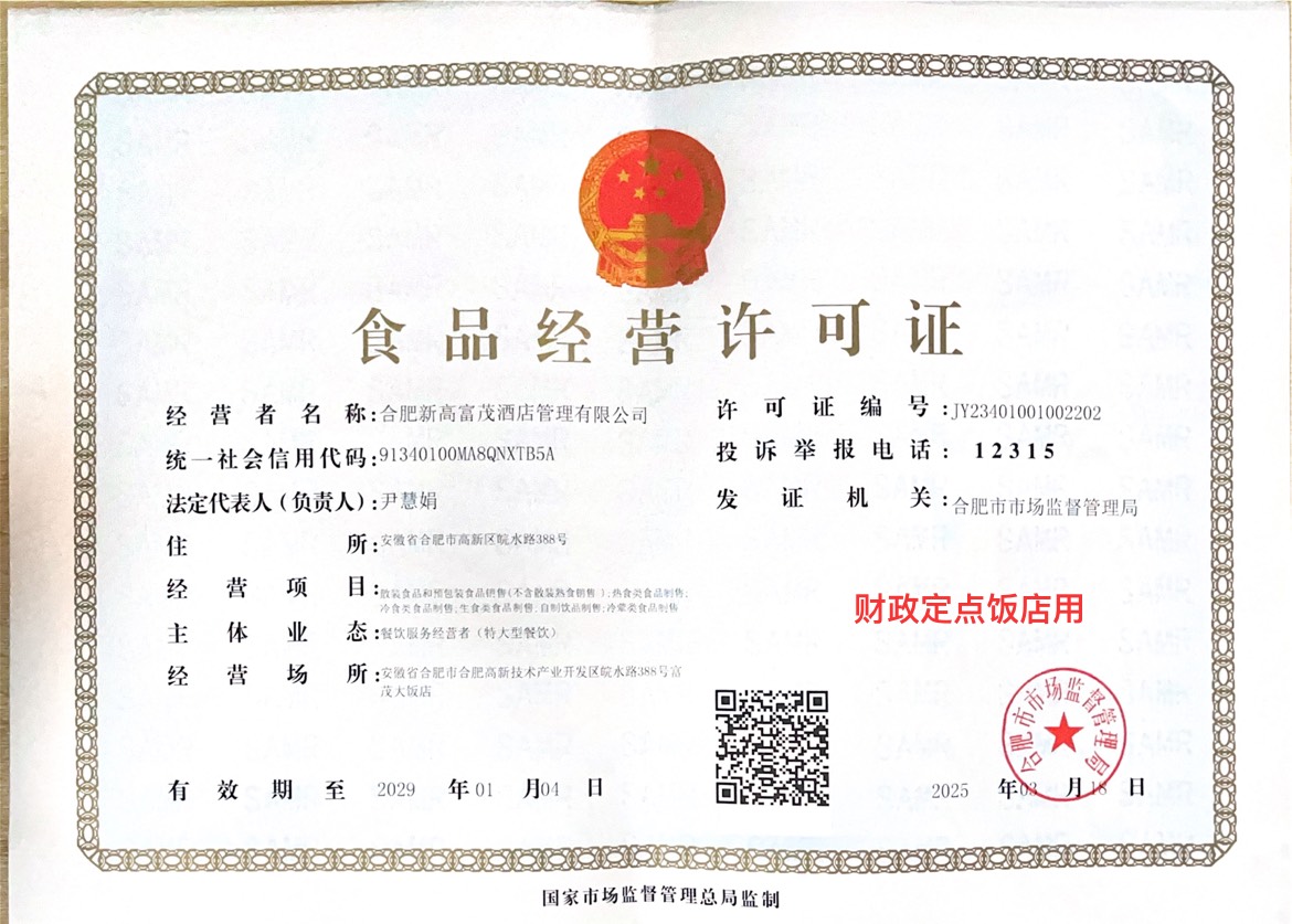 营业场所:安徽省合肥市高新区皖水路***号高新富茂大饭店
