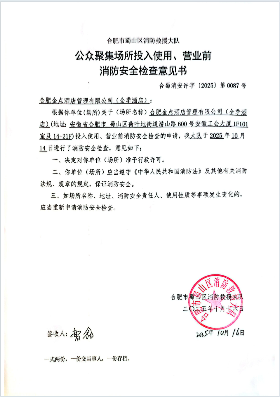 合肥金点酒店管理有限公司入围2025-2026年合肥市市直党政机关会议场所保障服务框架协议采购的结果公告