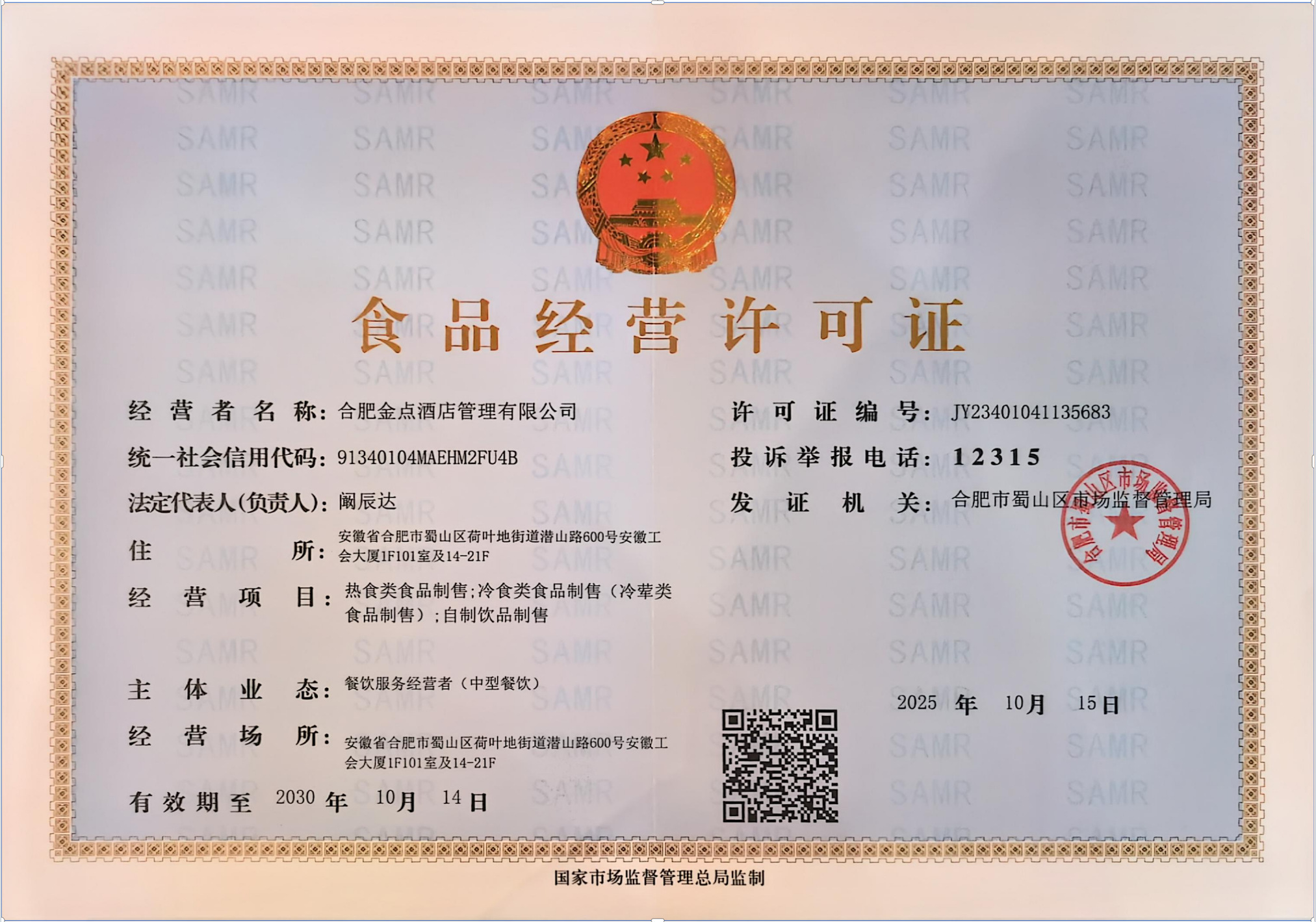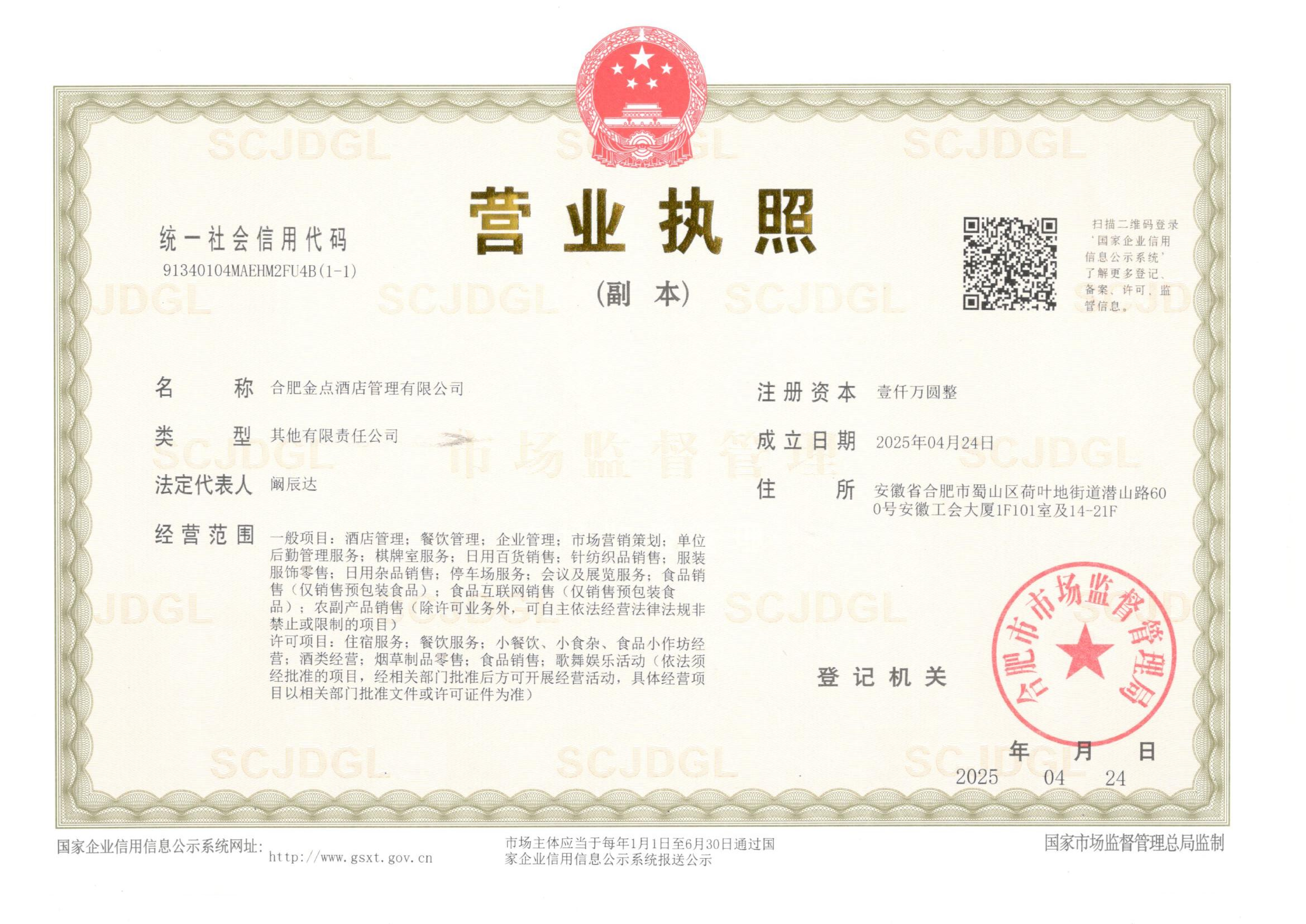 供应商名称:合肥金点酒店管理有限公司