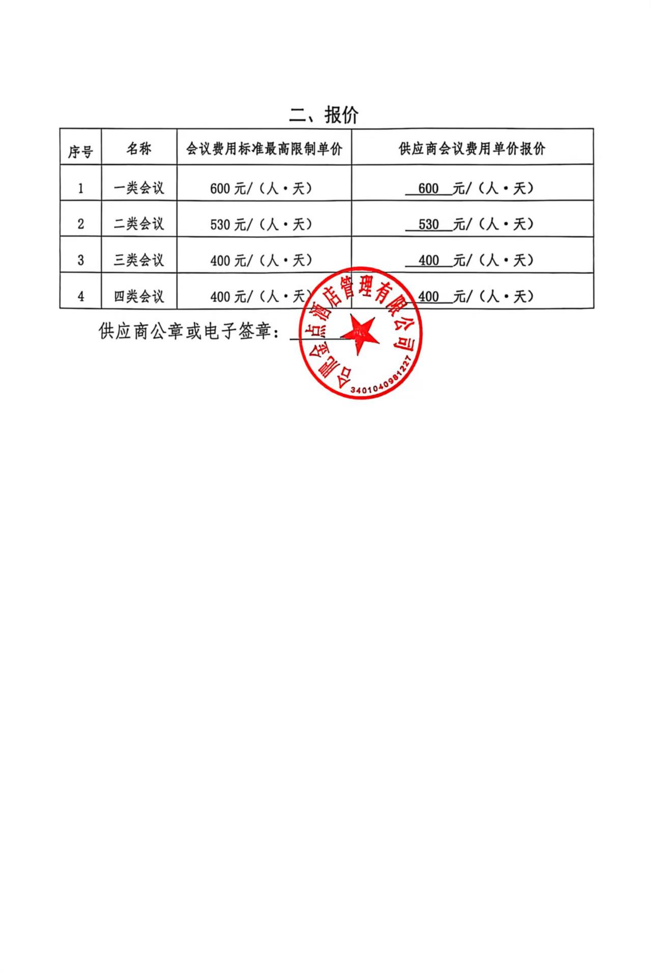 合肥金点酒店管理有限公司*********年合肥市市直党政机关会议场所保障服务框架协议采购