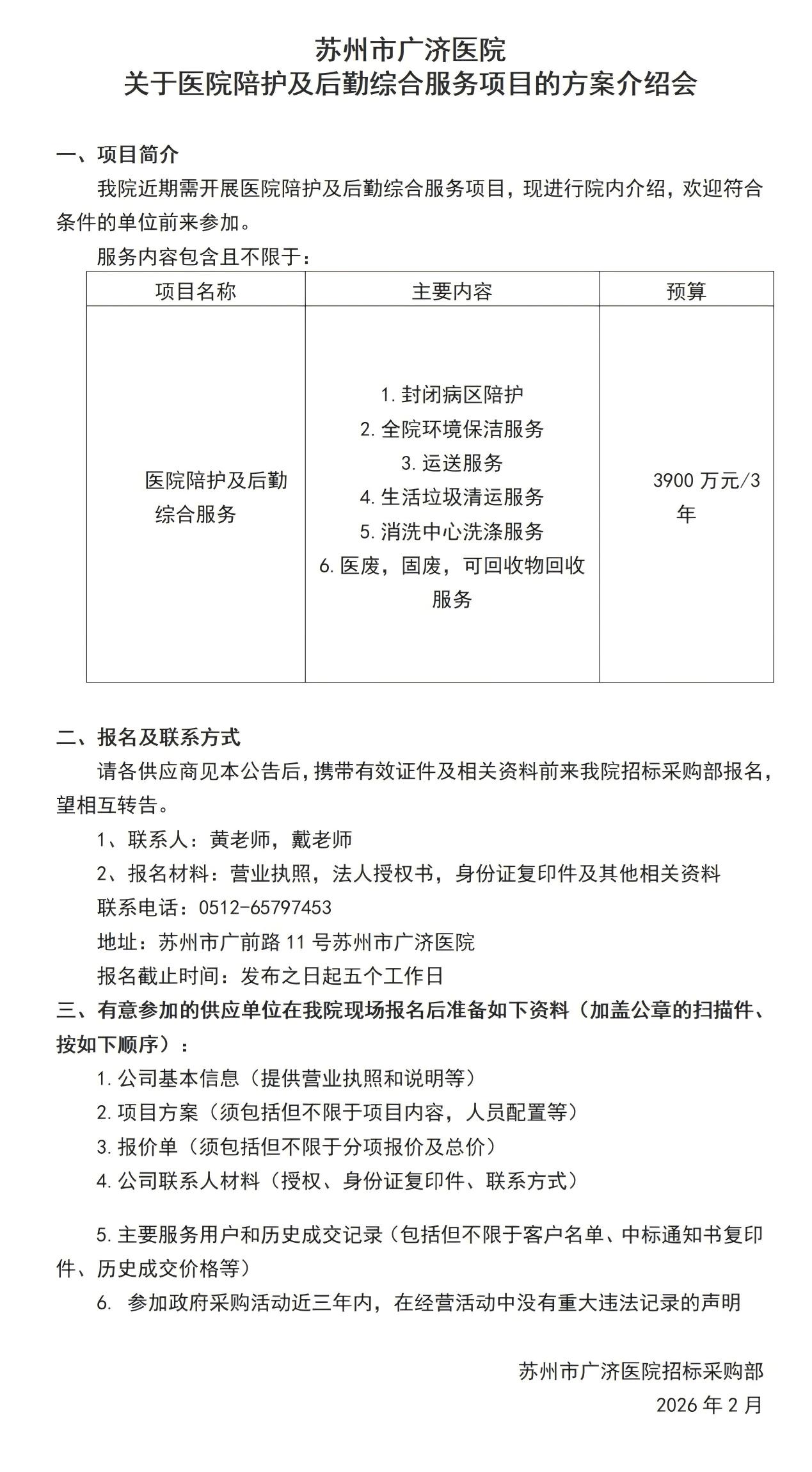 苏州市广济医院关于医院陪护及后勤综合服务项目的方案介绍会