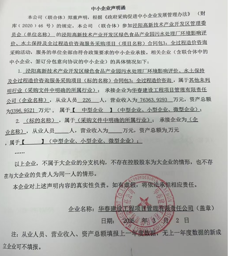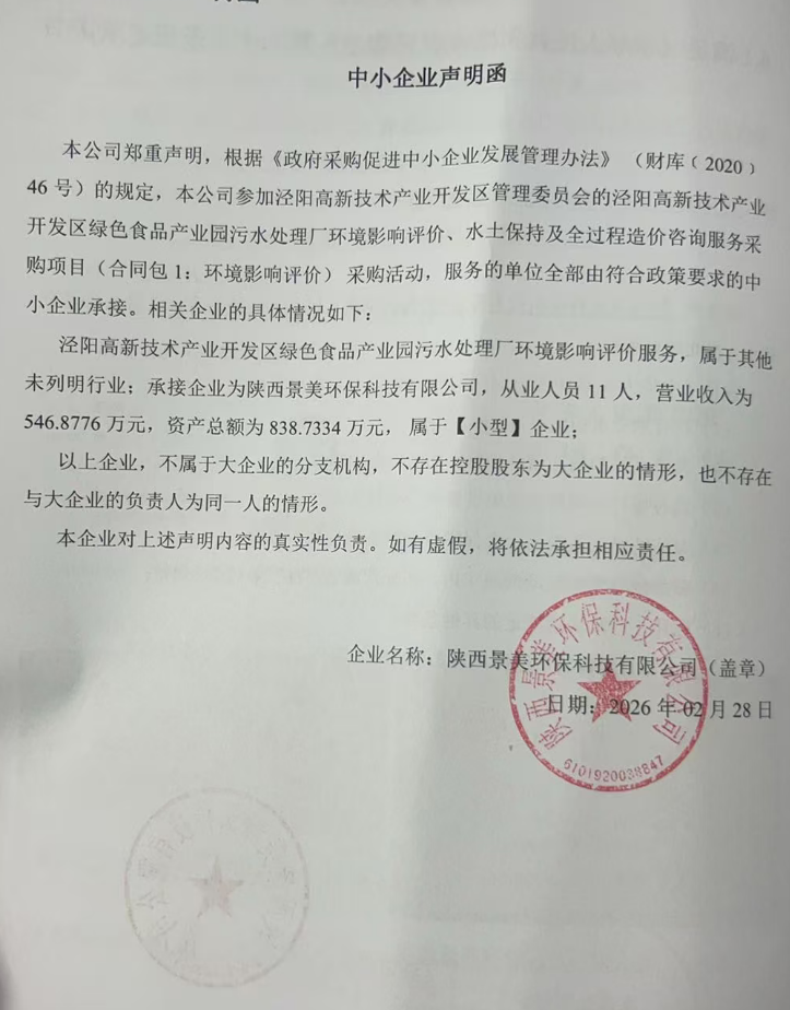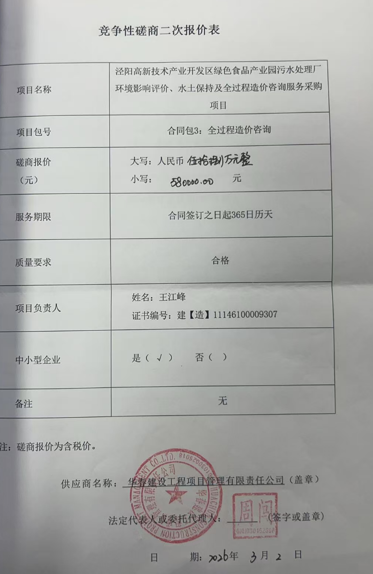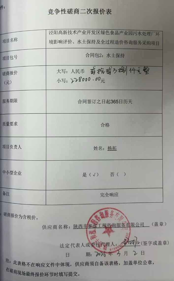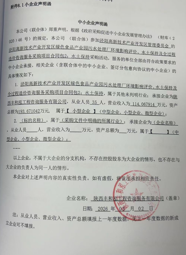 二、项目名称:泾阳高新技术产业开发区绿色食品产业园污水处理厂环境影响评价、水土保持及全过程造价咨询服务采购项目