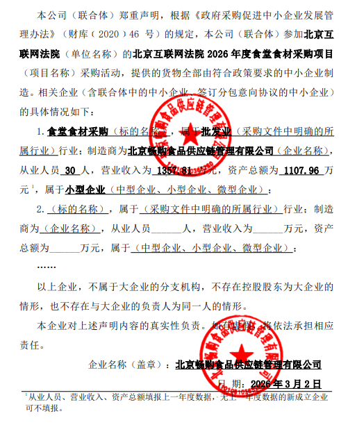 [公开]北京互联网法院2026年度食堂食材采购项目中标公告